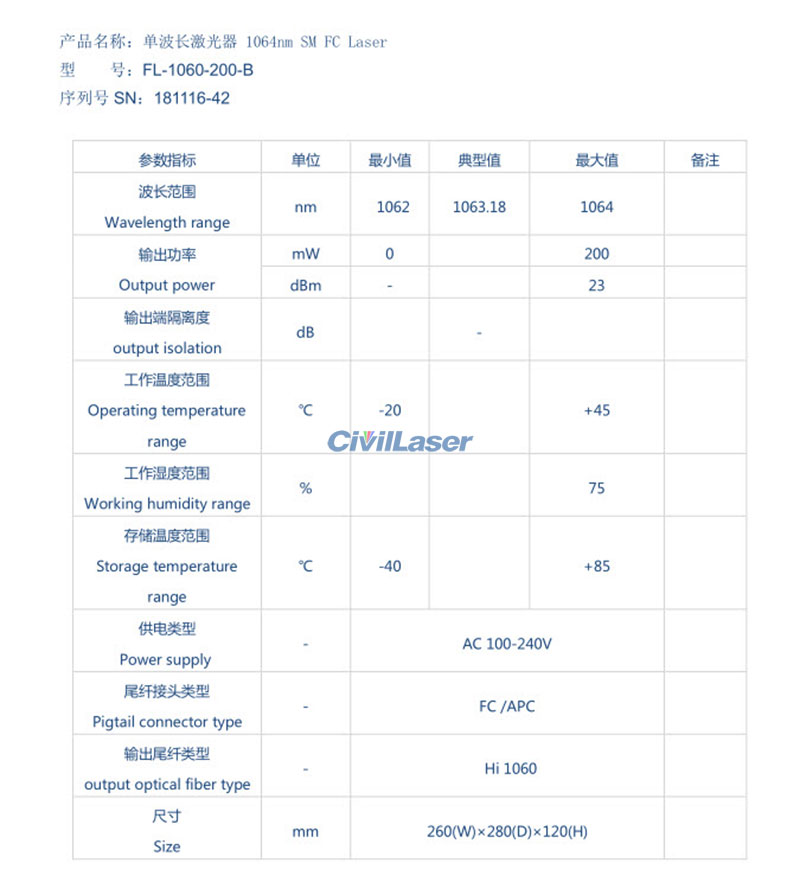 combined with fiber-optic FBG frequency-locked frequency to ensure stable spectral wavelength and single-mode pigtail output.