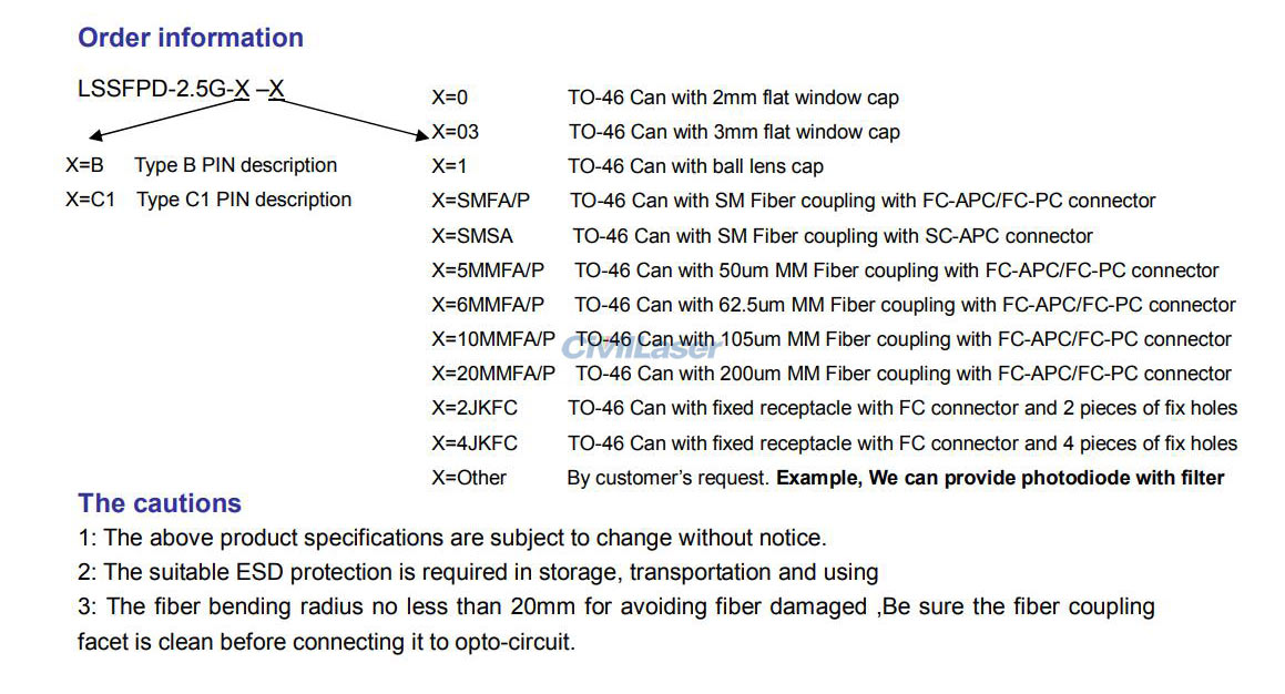 (1) The default is TO-46 Can package, please contact us if you need other models.