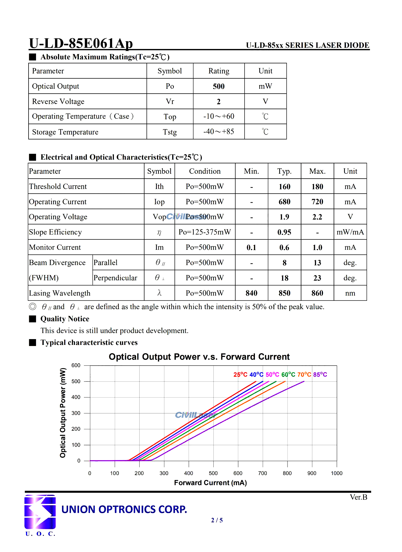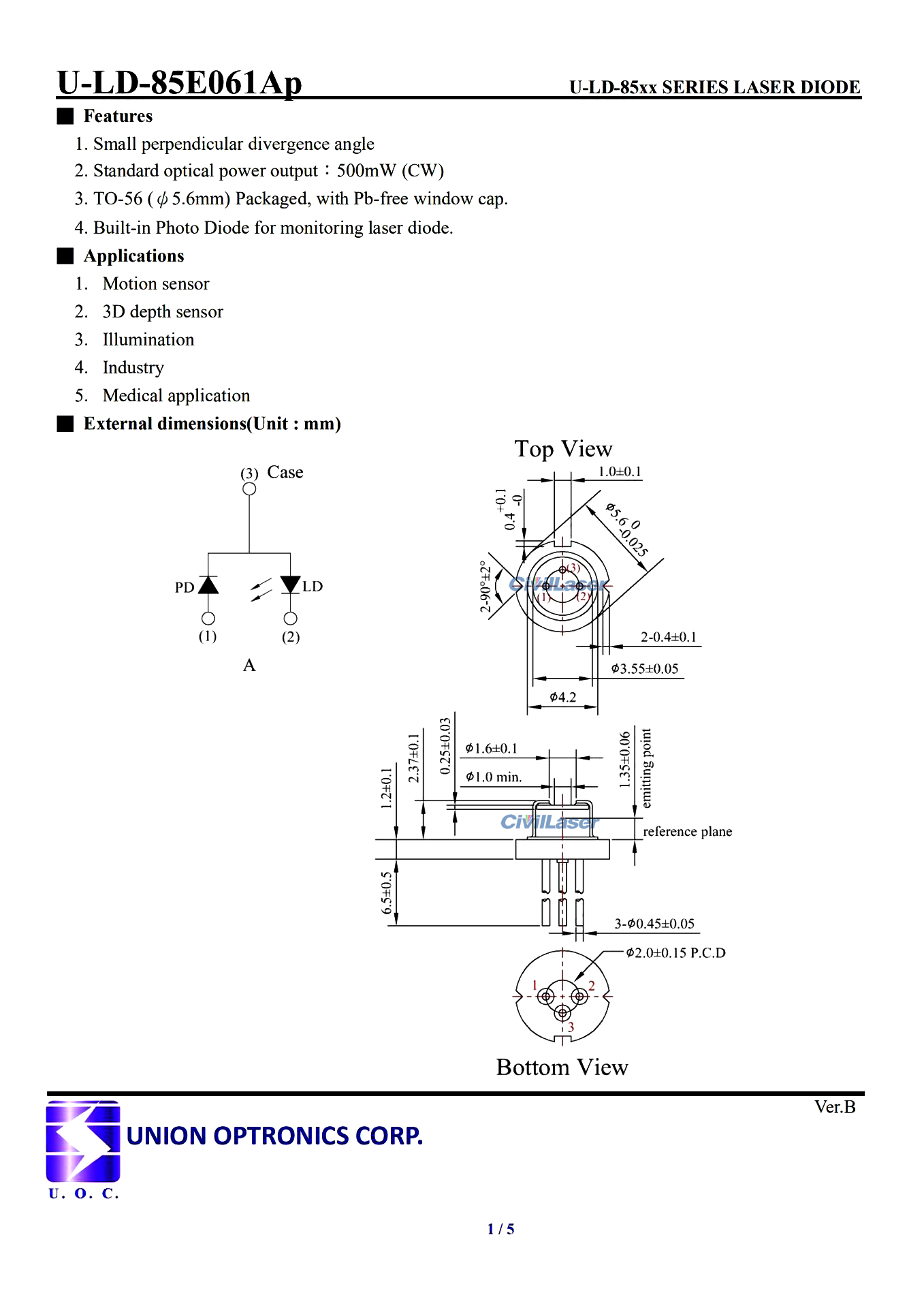 3. TO-56 (Φ5.6mm) Packaged, with Pb-free window cap.