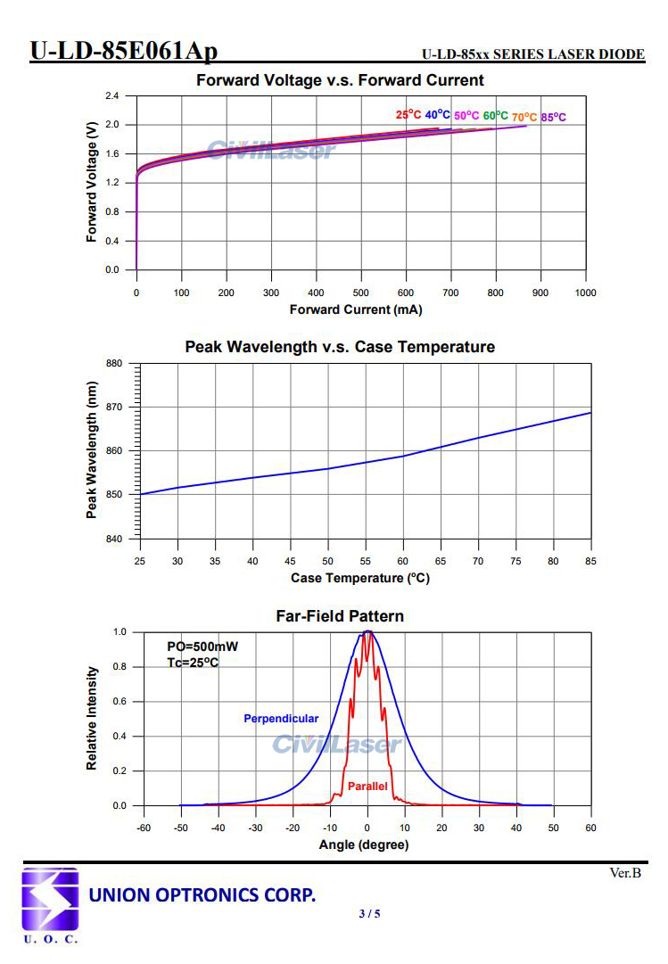Union 850nm 500mW Diodo láser IR U-LD-85E061Ap TO18 Package