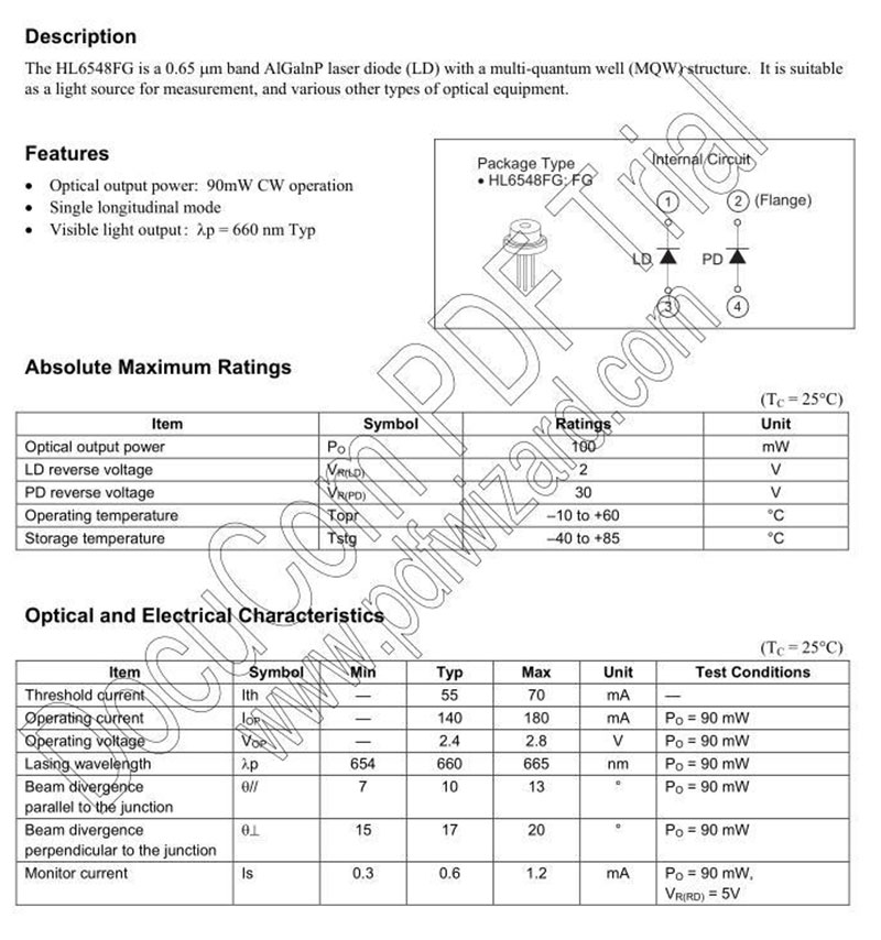 Wavelength: 405nm Potencia de salida: 1000mw Model: JLD4050ZA Material Science: Si Package: TO18-9 Pin counts: 3