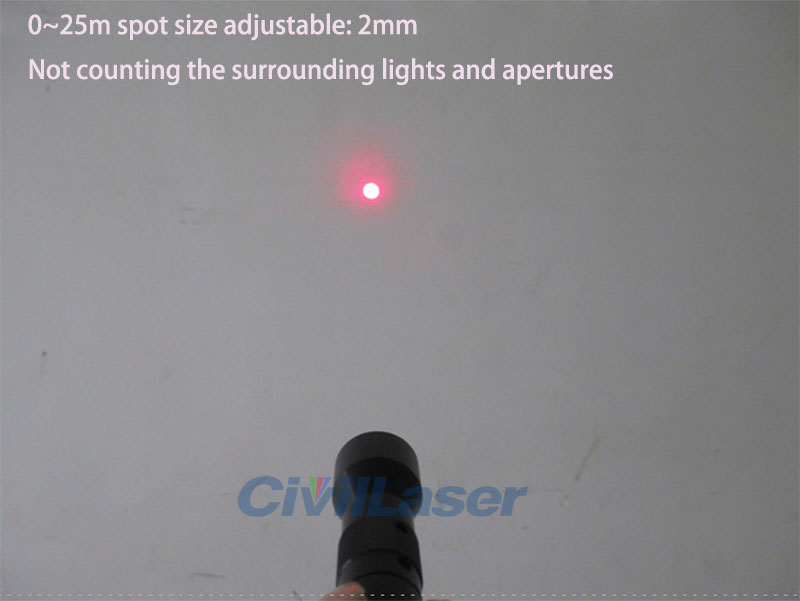 1-20 meters adjustable small spot: 2mm (Nota: Not counting the peripheral aperture and stray light)