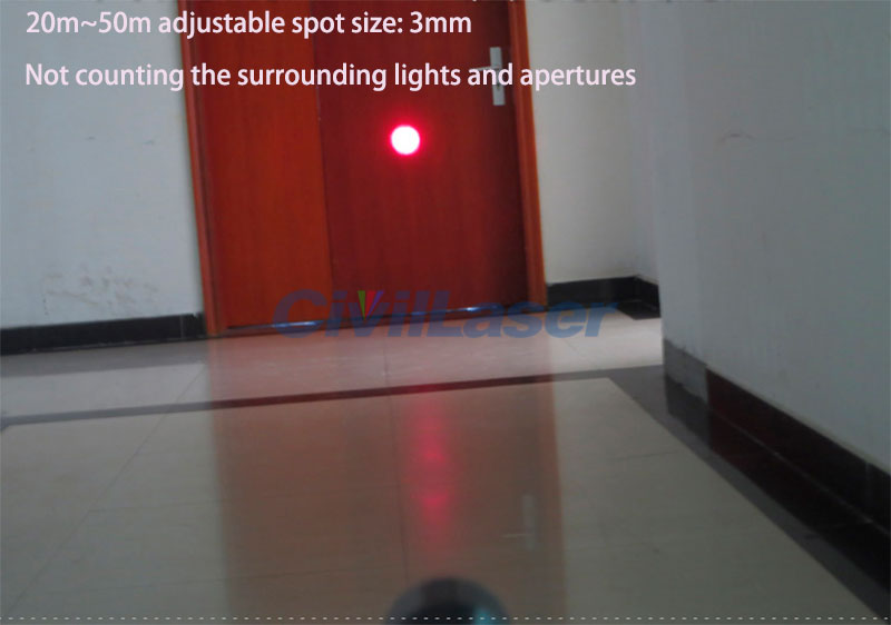 20-50 meters adjustable small spot: 3mm (Nota: Not counting the peripheral aperture and stray light)