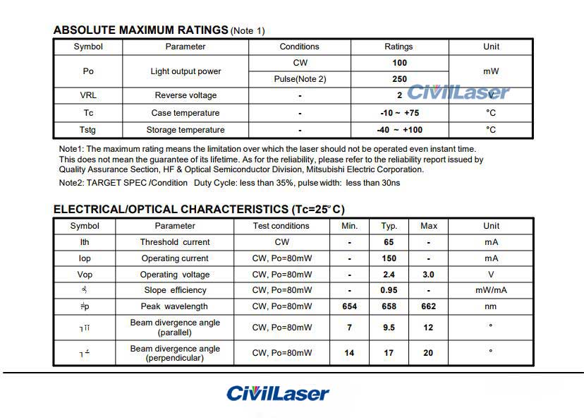 Mitsubishi 658nm 100mW CW Rojo Diodo láser ML101J25 High Efficeiency Semiconductor LD