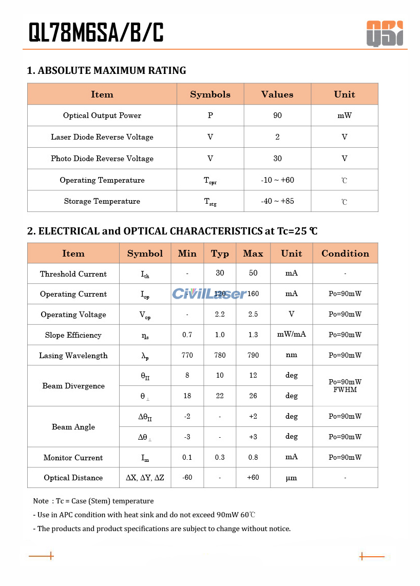 QSI QL78M6SX LD 780nm 90mW Infrarrojo Diodo láser For Sale