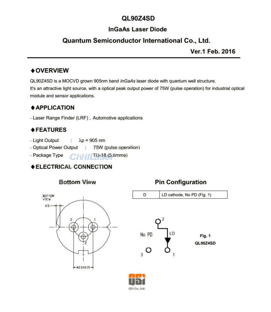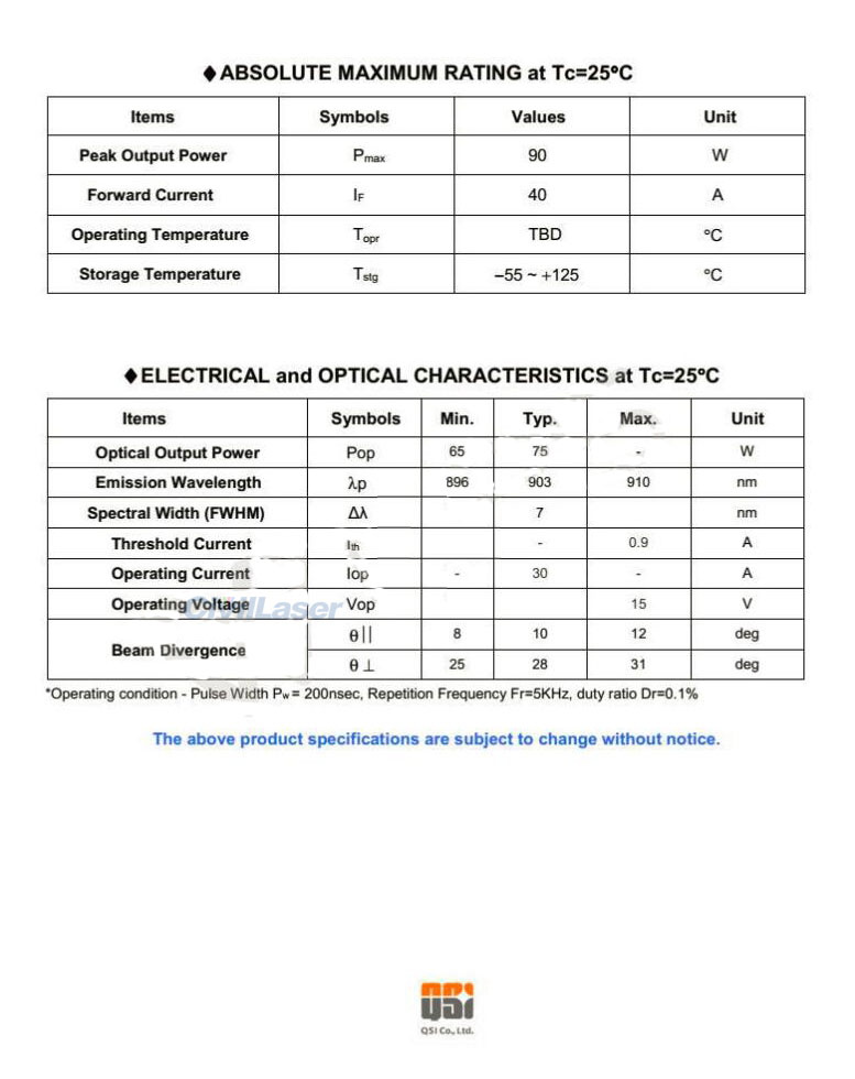QSI Infrarrojo Diodo láser 905nm 75W Alto Voltaje Pulse Módulo láser Diode QL90Z4SD TO-18