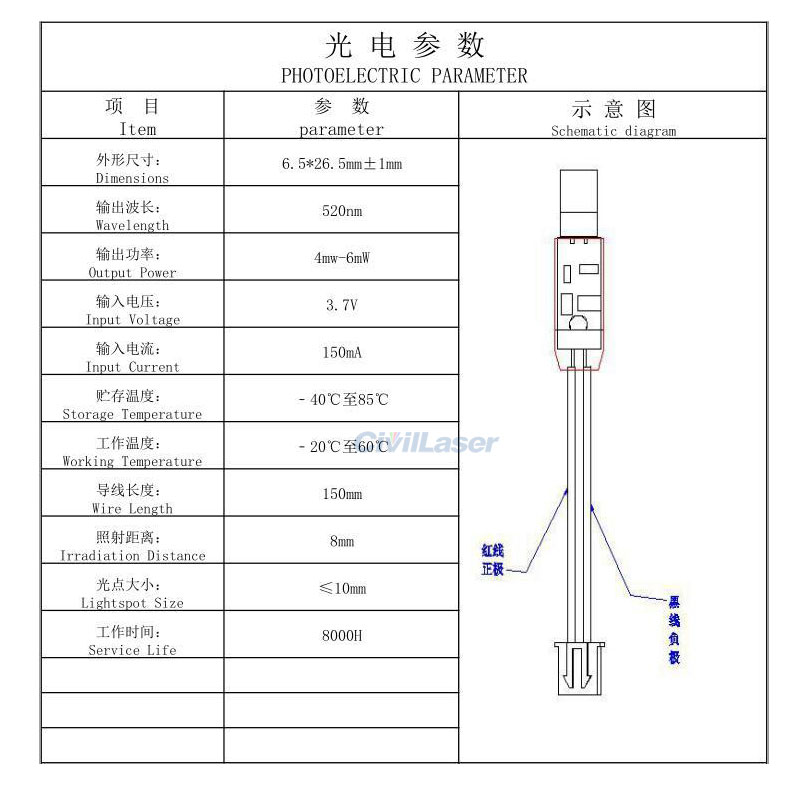 5mW Low Power Módulo láser Dot 520nm Láser de diodo verde 6.5*26.5mm