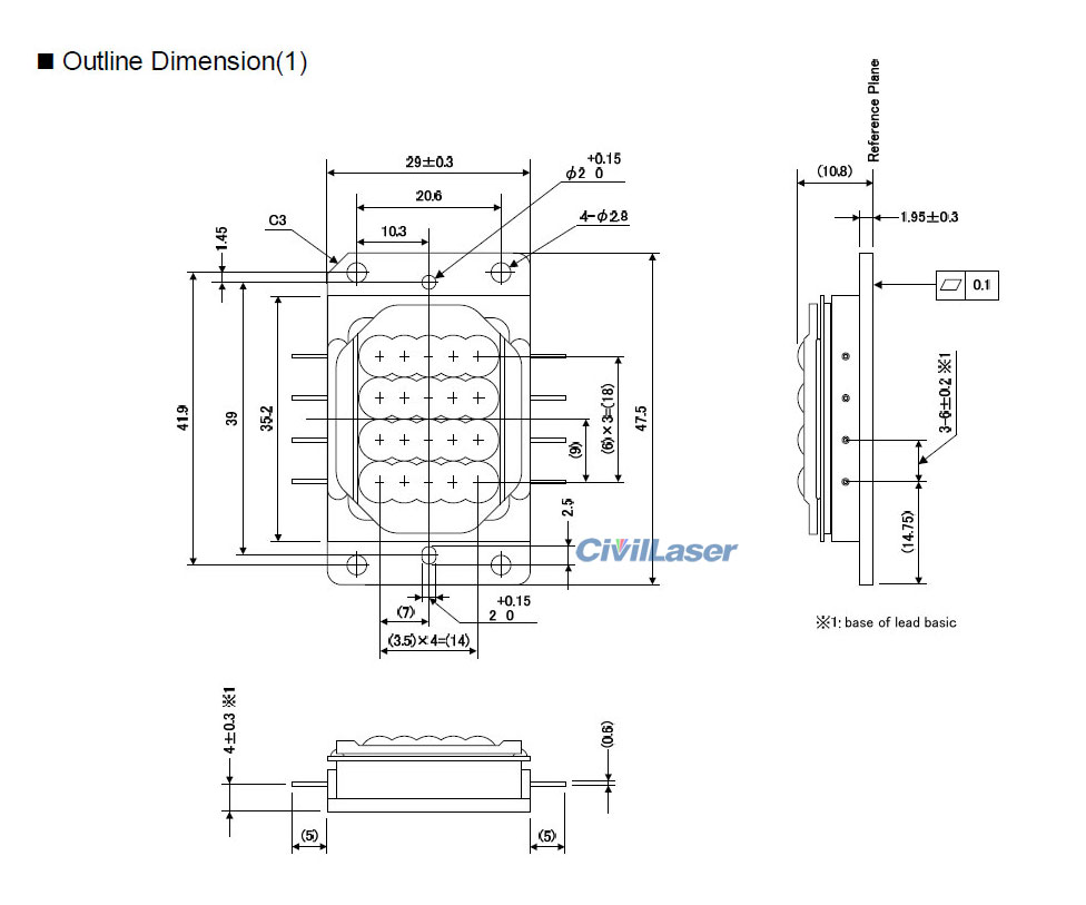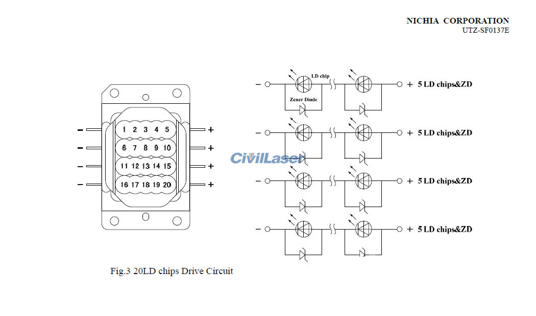 This type of diode is mainly used for the display light source of laser color projectors, NUBM31 and NUBM36, with the same shape and size, but the power is different.