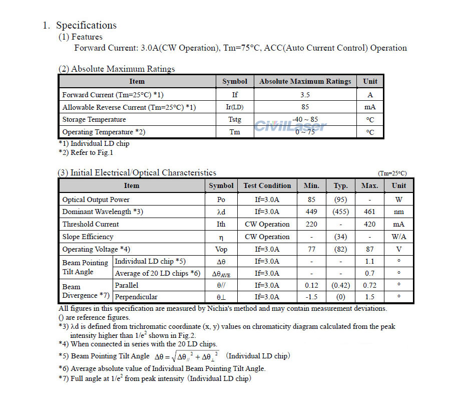 Nichia Powerful Diodo láser NUBM31 455nm 4.75W*20 95W Diodo láser azul Bank