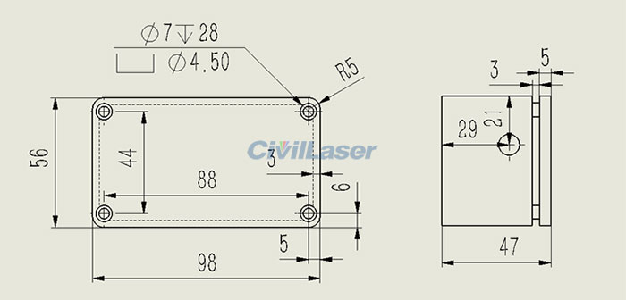 Dimensión del cabezal láser: Near 98(L)x56(W)x47(H)mm3  (Haga clic aquí para encontrar detalles)