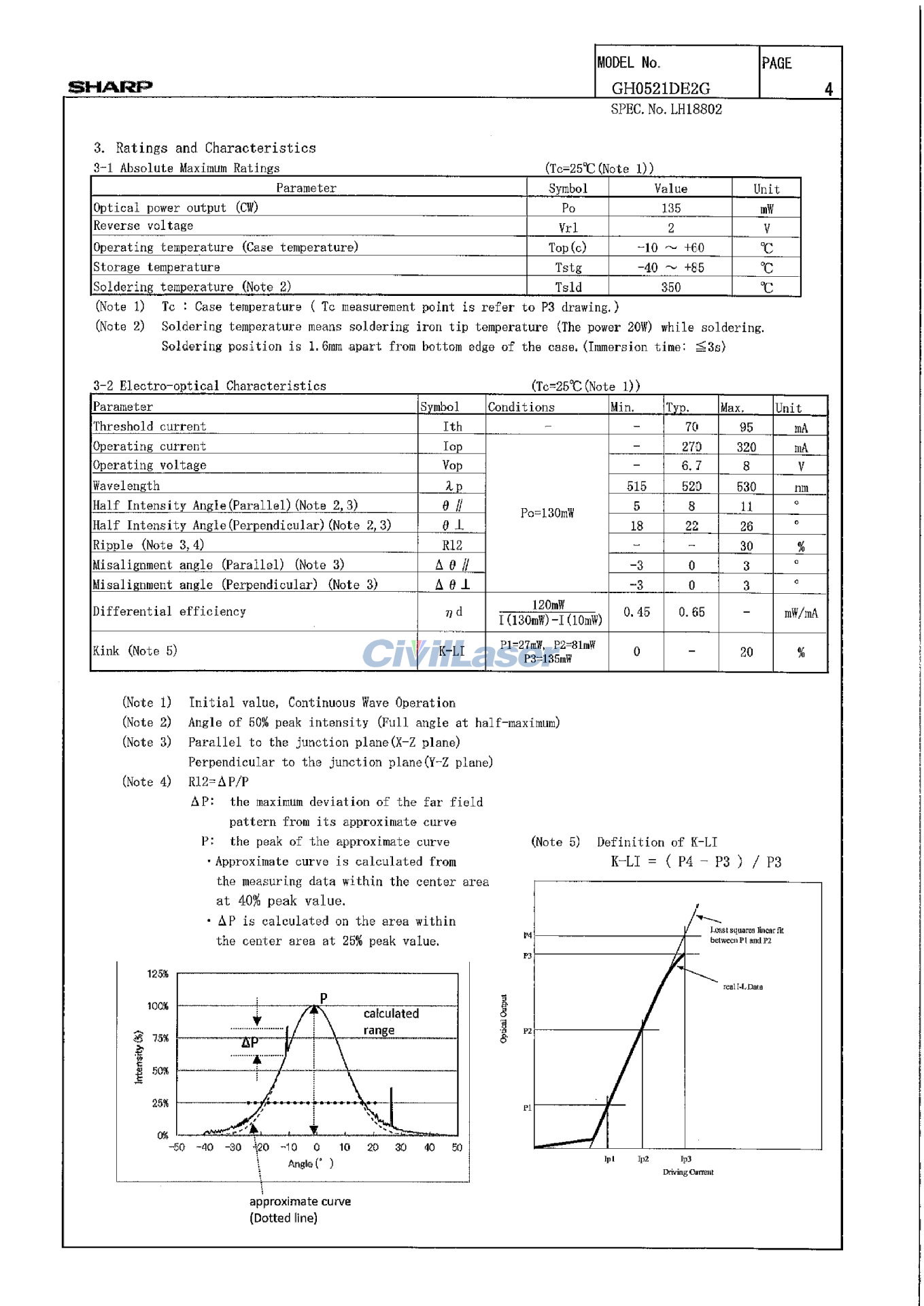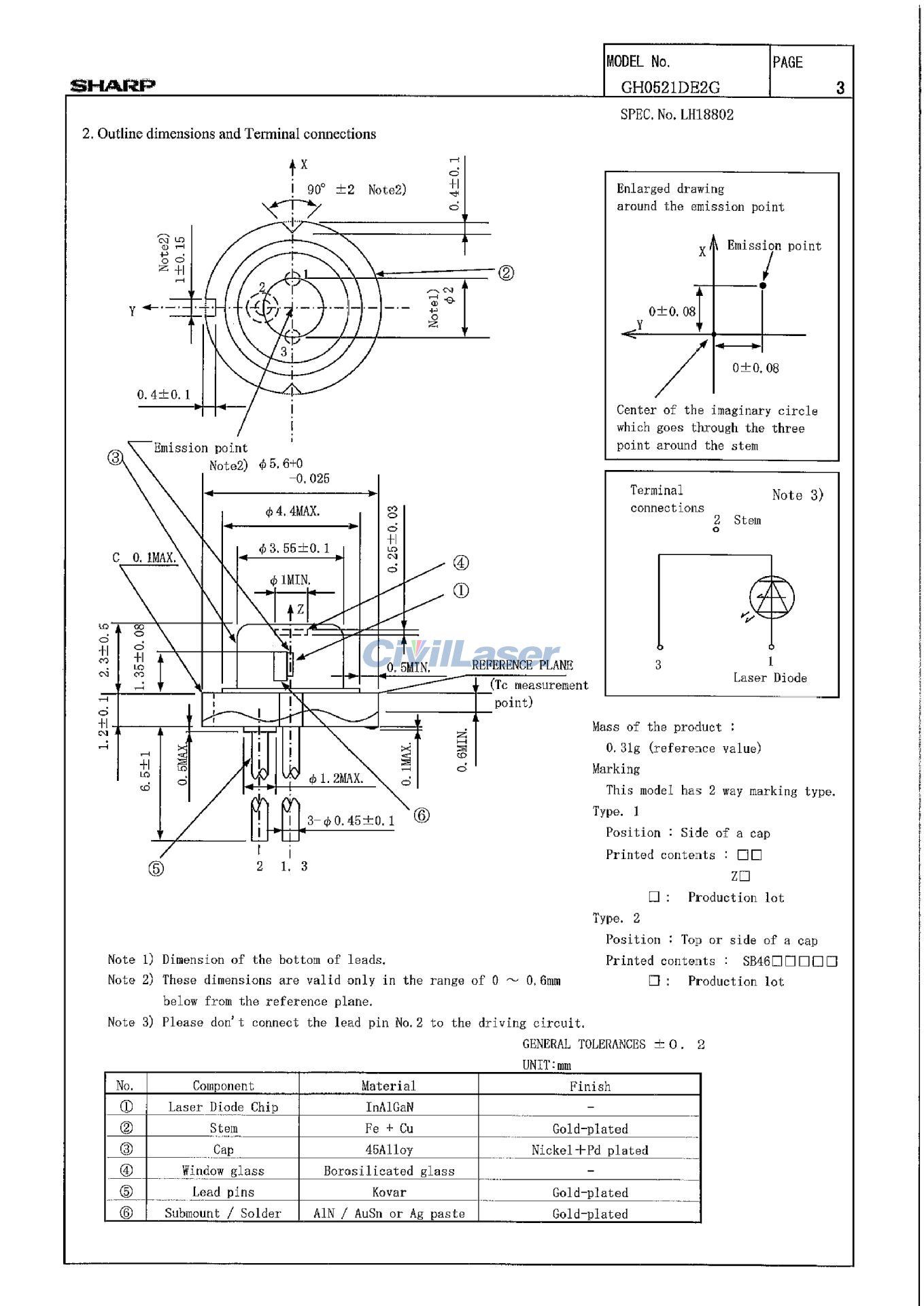 SHARP 520nm 135mw Verde laser diode GH0521DE2G