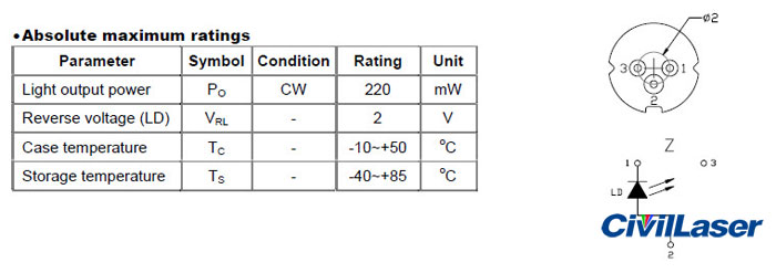 This component sensitive to static electricity, anti-static measures do not make direct contact with the laser tube by human hand, in addition to the product must have a qualified driver circuit before work, different laser beam power with the same working voltage, but  operating current is different, the circuit of the tube drive current needed to control in a safe range, otherwise it will affect life expectancy.