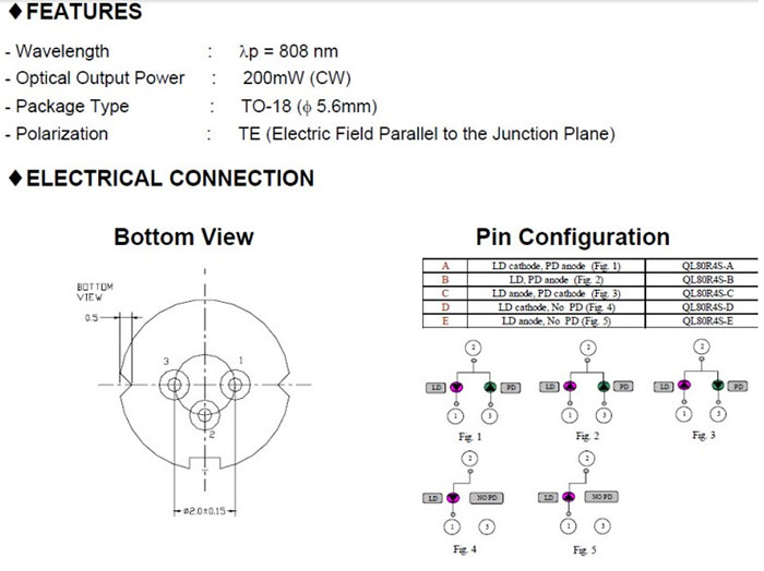 808nm 200mw IR laser diode PD sales TO-18 5.6mm