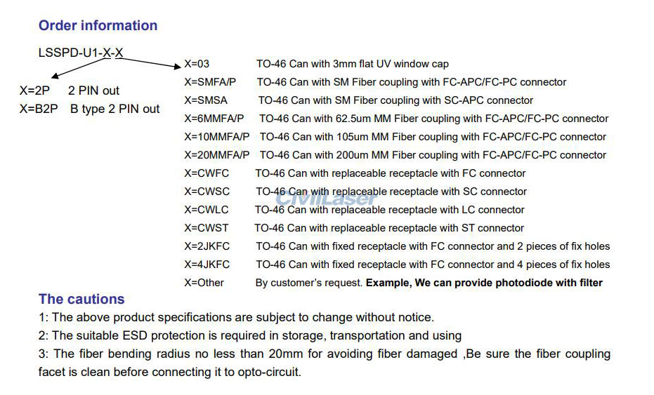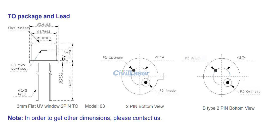 (1) The default is TO-46 Can package, please contact us if you need other intrefaces.