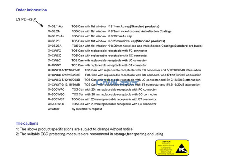 (1) The default is TO5 Can package, please contact us if you need other intrefaces.