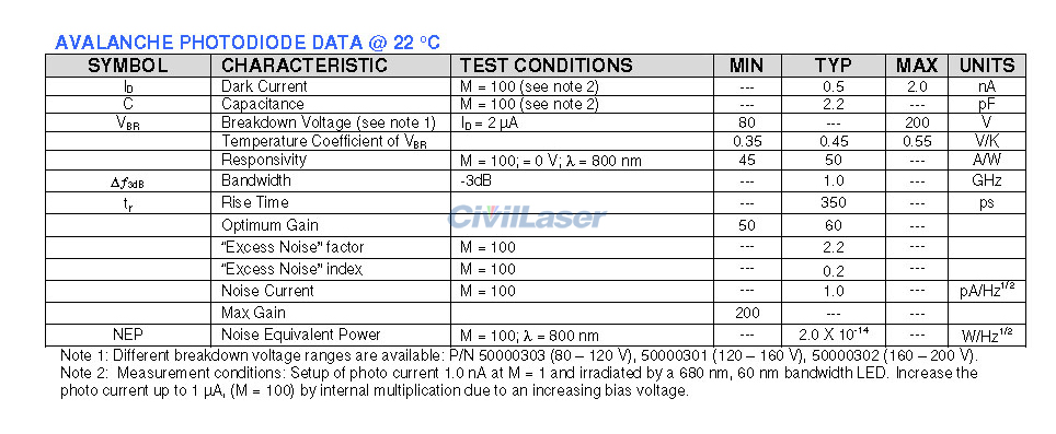 First Sensor High Speed Si APD 400-1100nm Avalanche Photodiode Amplifier TO5 Package