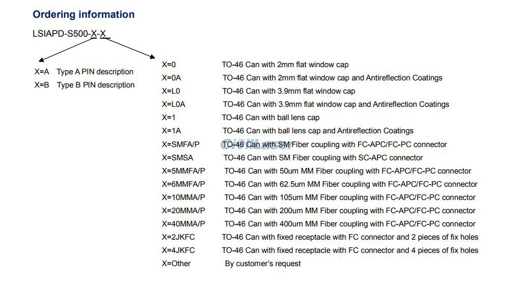 (1) The default is TO-46 Can package, please contact us if you need other intrefaces.