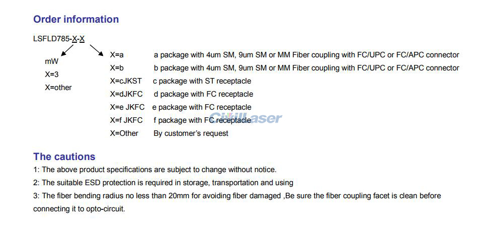785nm 3mW FP SM Laser diode