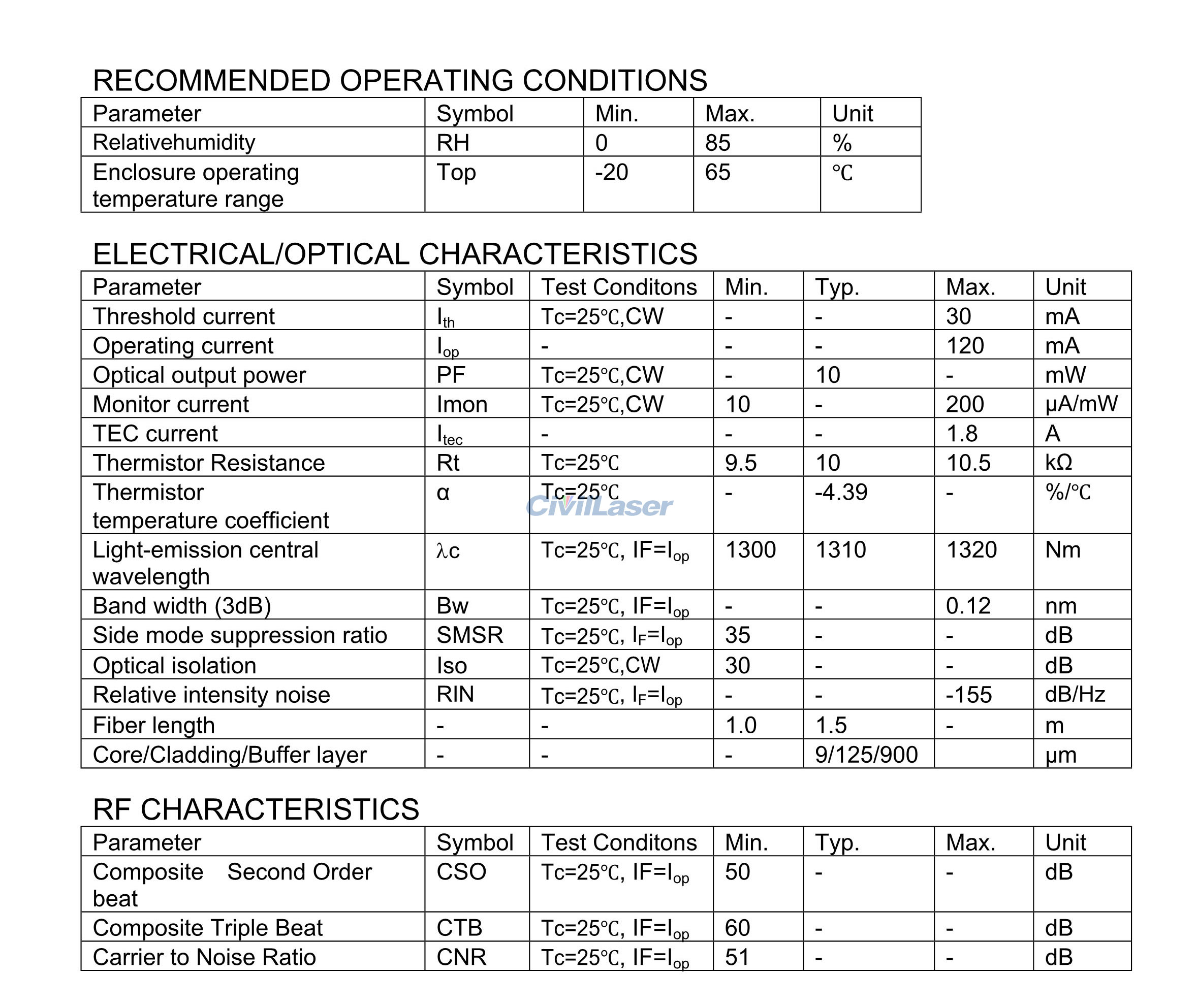 Longitud de onda: 1310nm