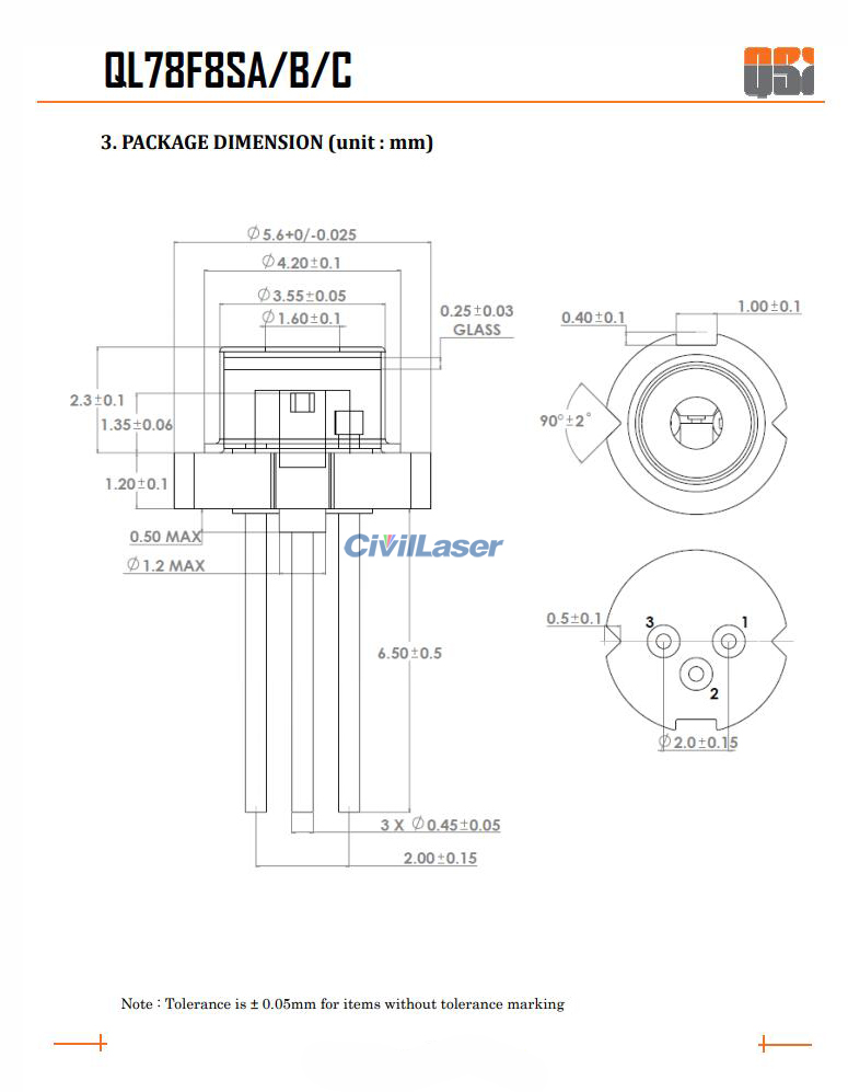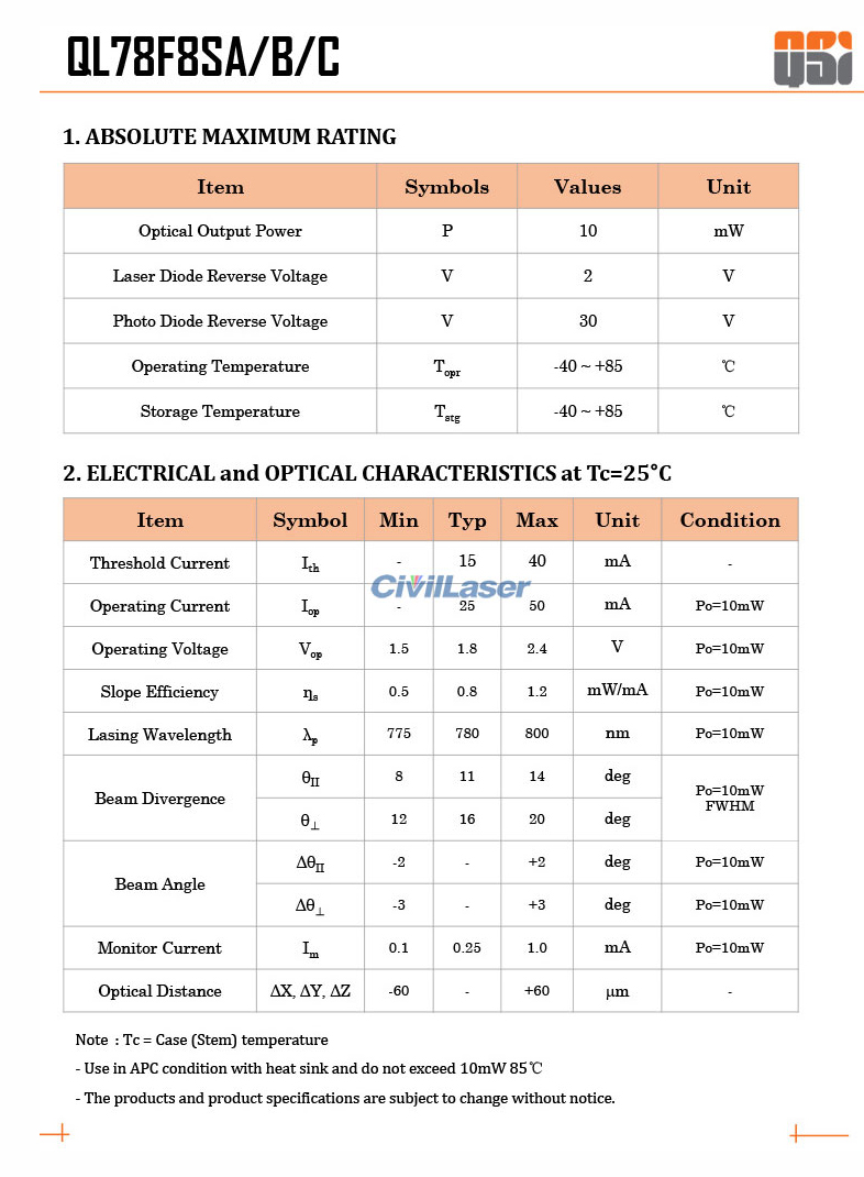 QSI LD QL78F8SA/B/C 780nm 10mW Infrarrojo Diodo láser