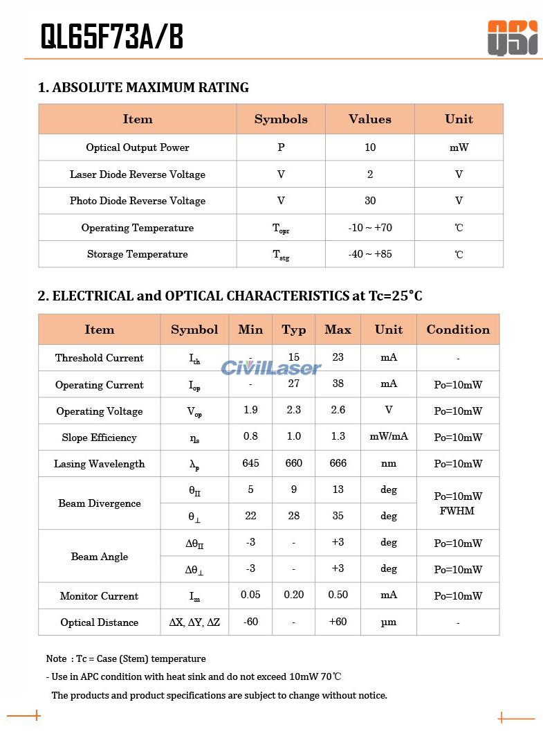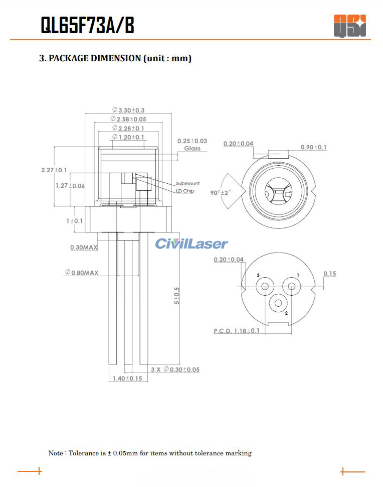 QL65F73X 650nm 10mW Rojo Diodo láser QSI LD TO-Can 3.3mm Package