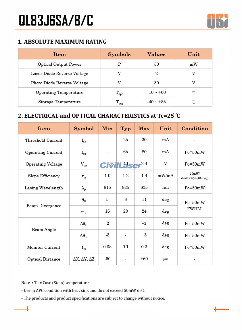 QL83J6SX 830nm 50mW Infrarrojo Diodo láser QSI LD Sensor láser