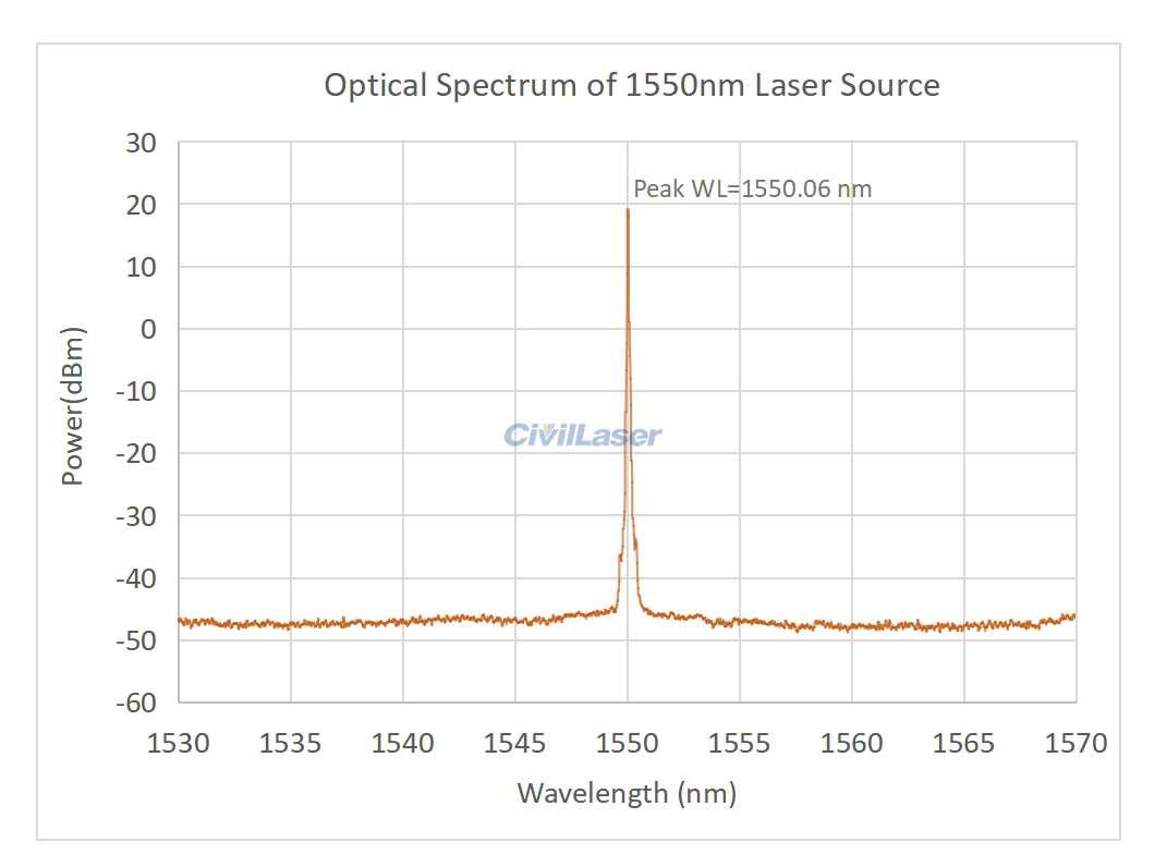 The 1550nm band single-wavelength laser light source (high power) uses DFB semiconductor laser chip, with high-power gain optical path module to achieve single-mode fiber high-power output, professionally designed drive circuit and TEC control to ensure safe and stable laser operation.