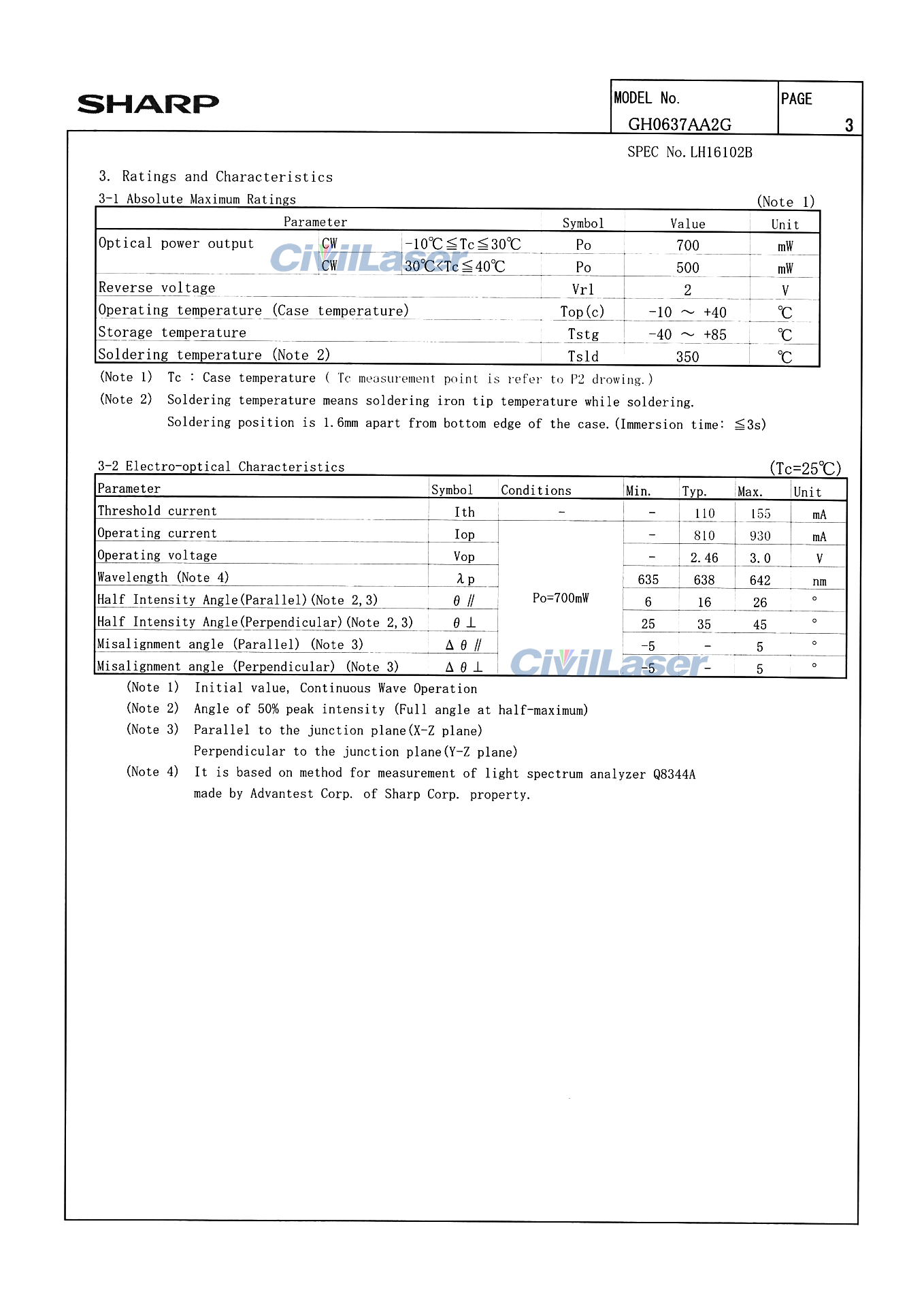 Sharp GH0637AA2G 638nm 700mW Diodo láser Rojo Laser Beam TO18 Package
