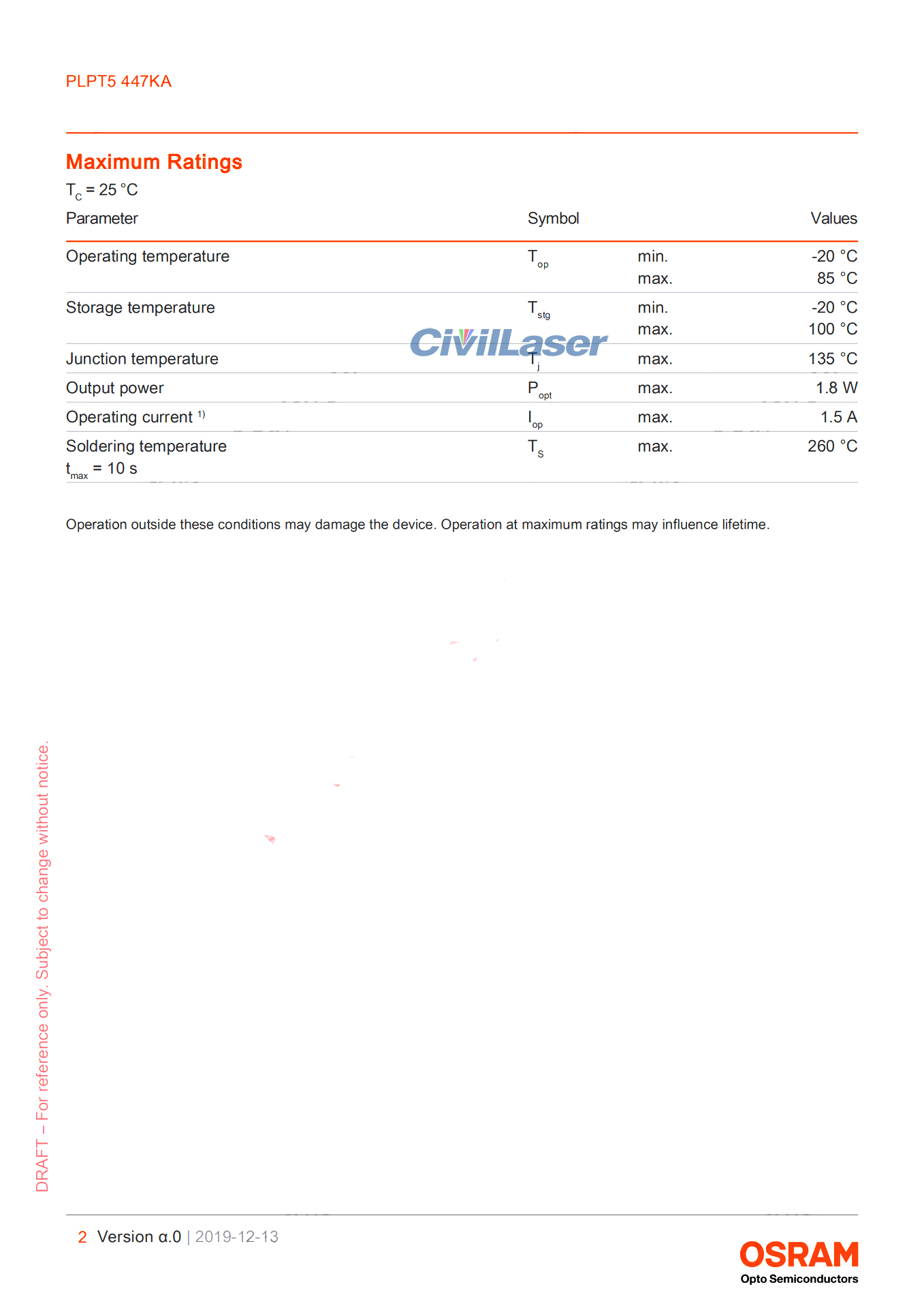 2. Typical emission wavelength: 447 nm