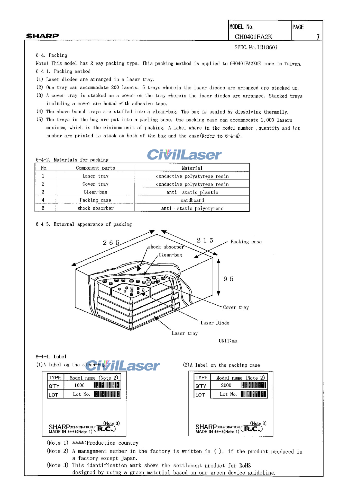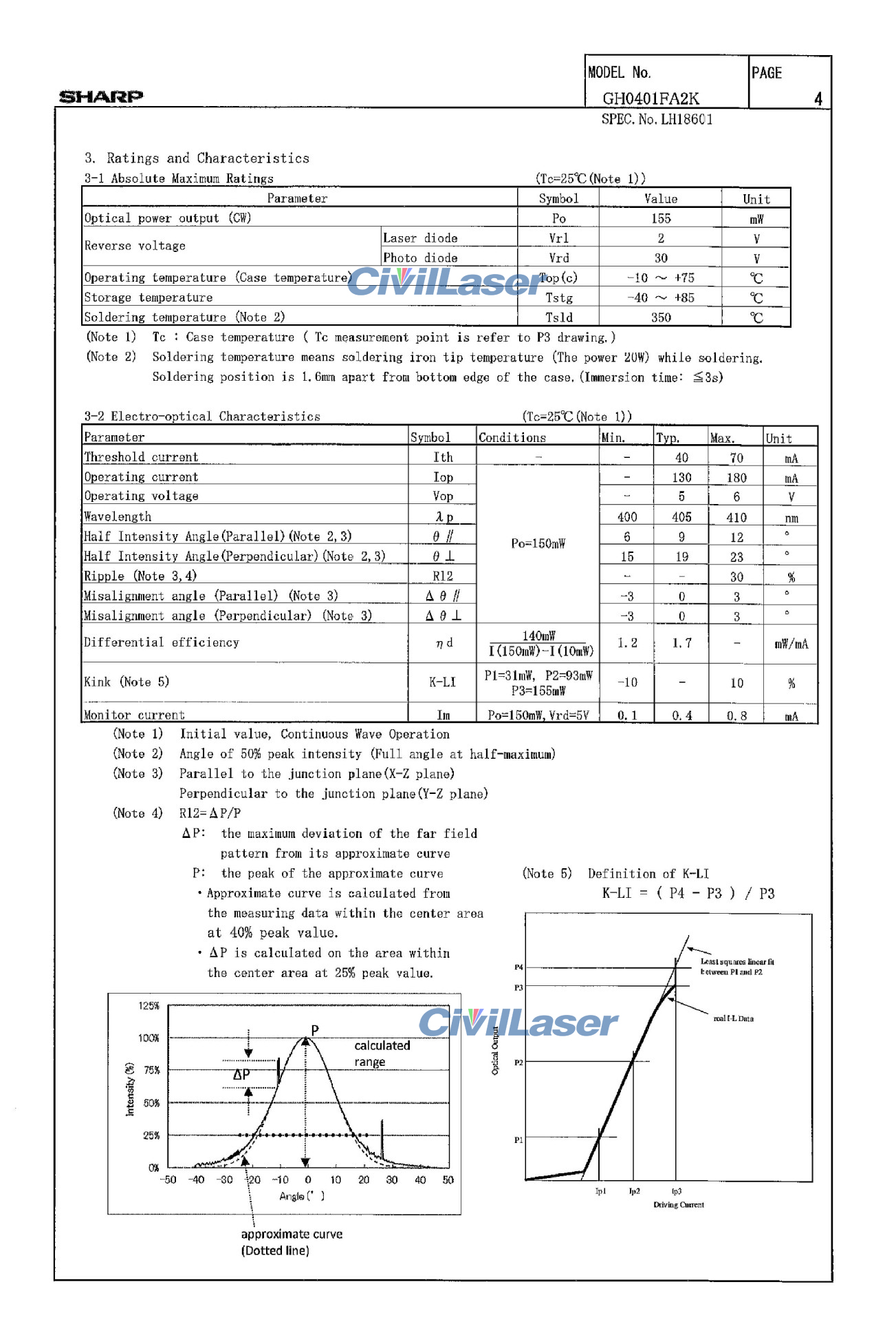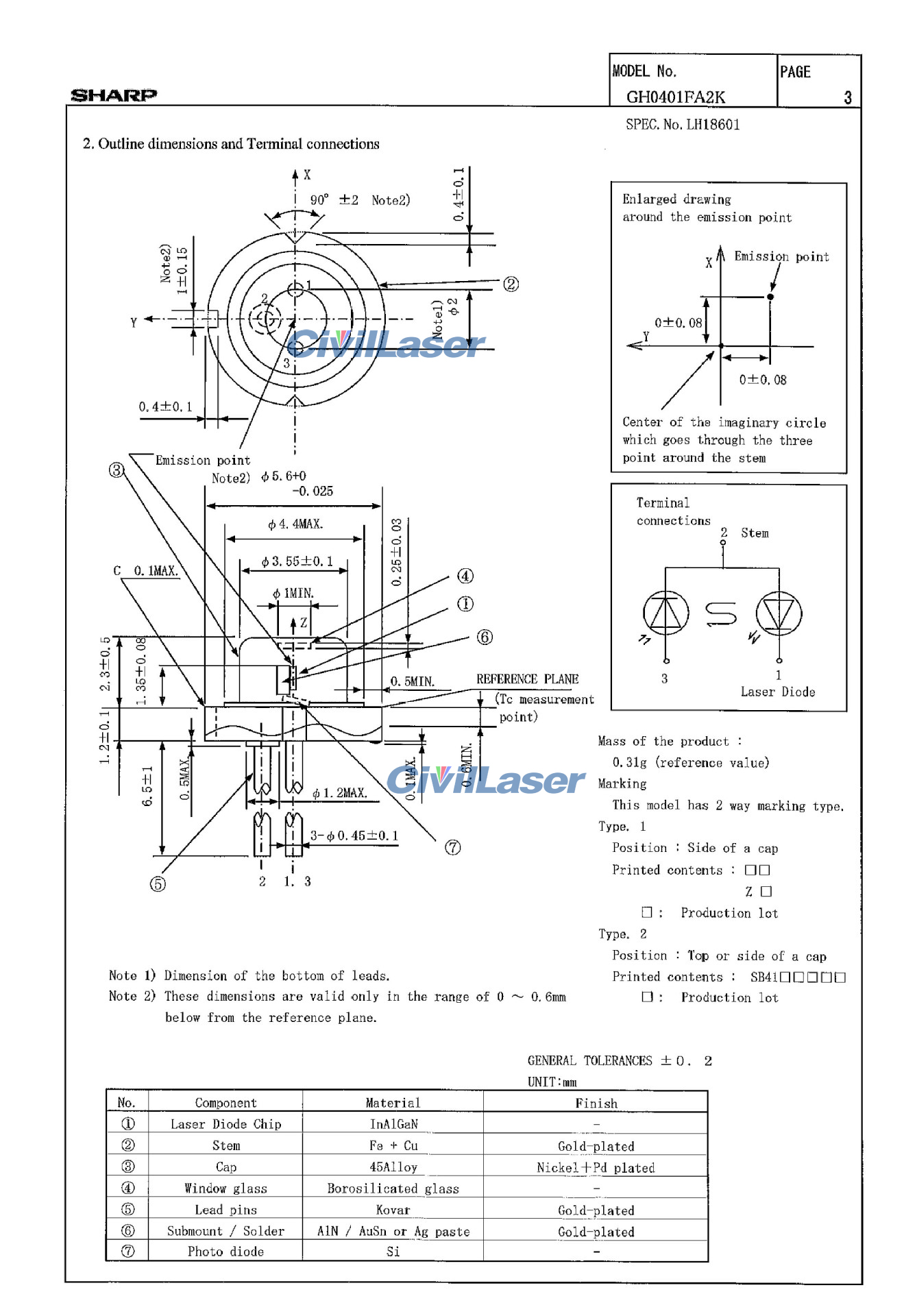 Sharp GH0401FA2K 405nm 150mW Diodo láser Modo singular LD With PD Φ5.6mm