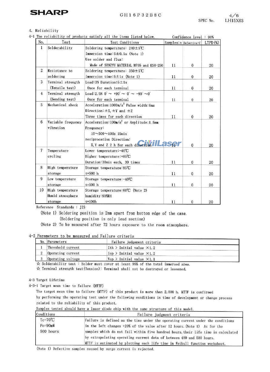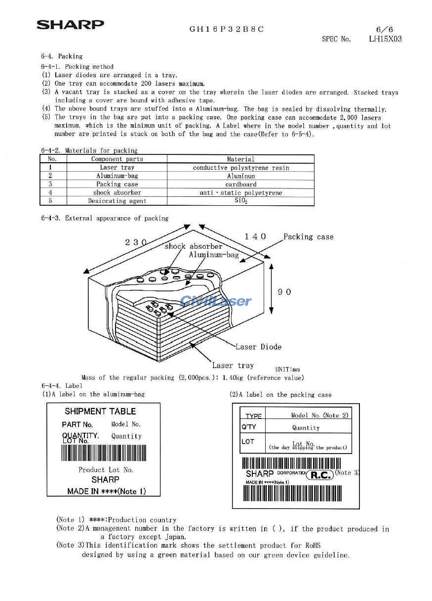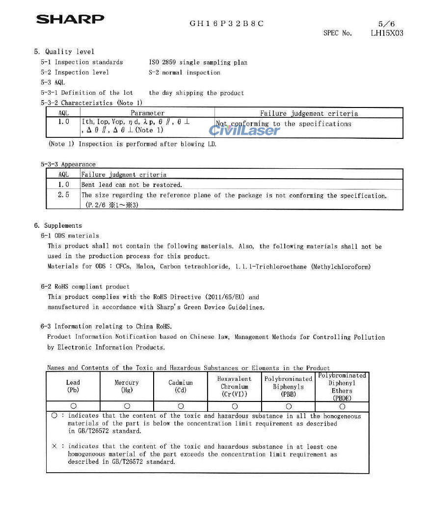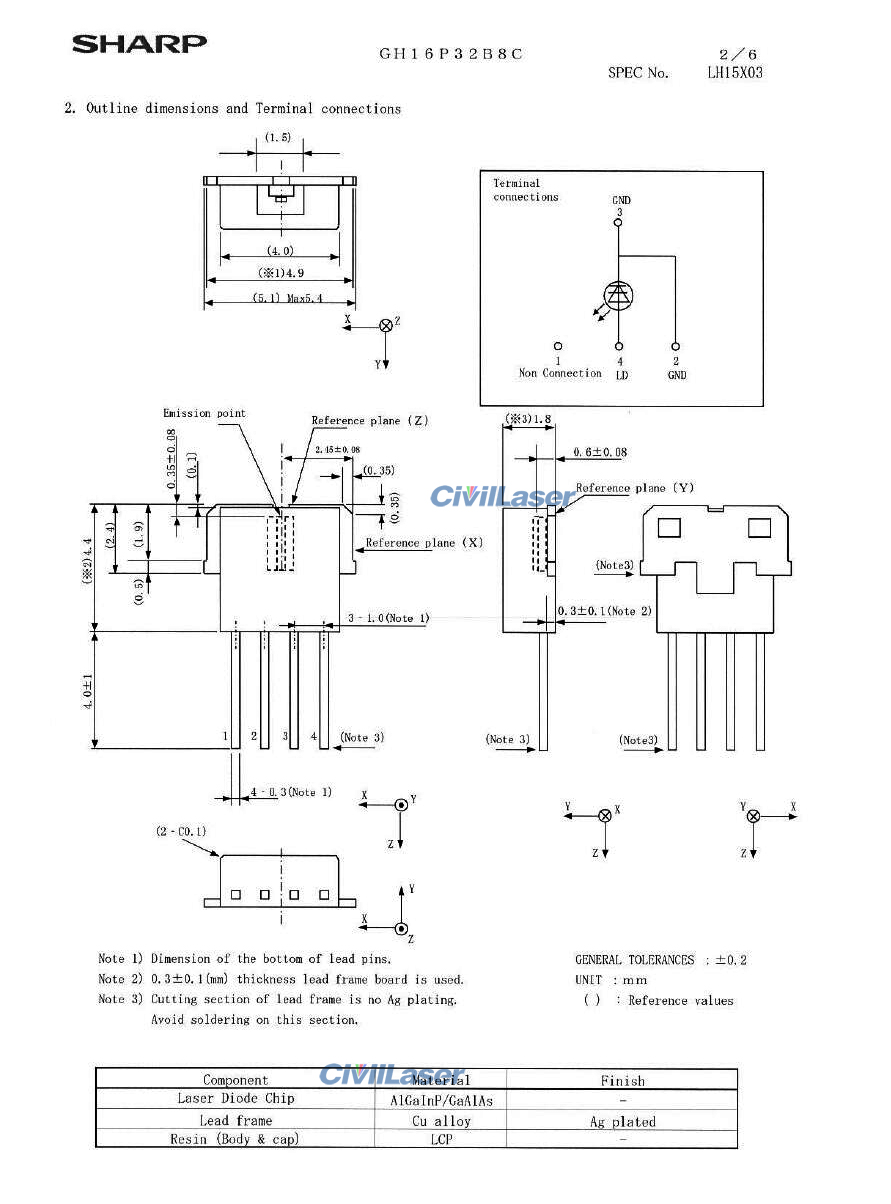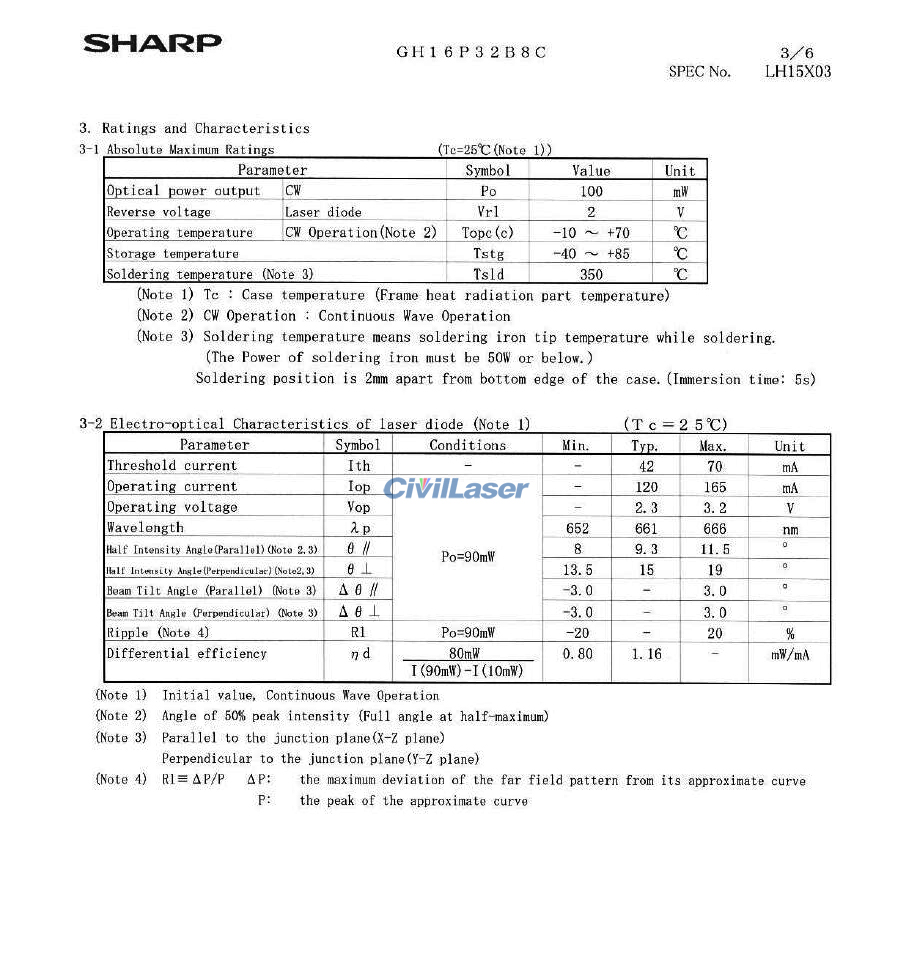 Sharp GH16P32B8C 660nm 100mW Rojo Diodo láser Flat Plastic Package