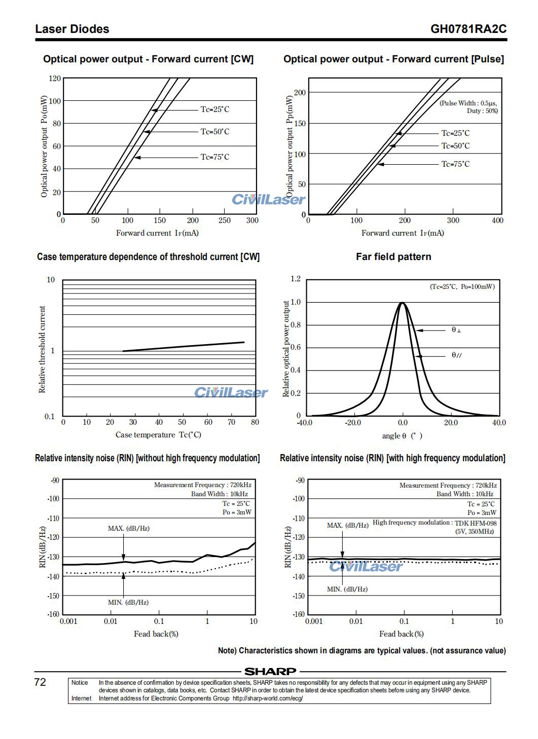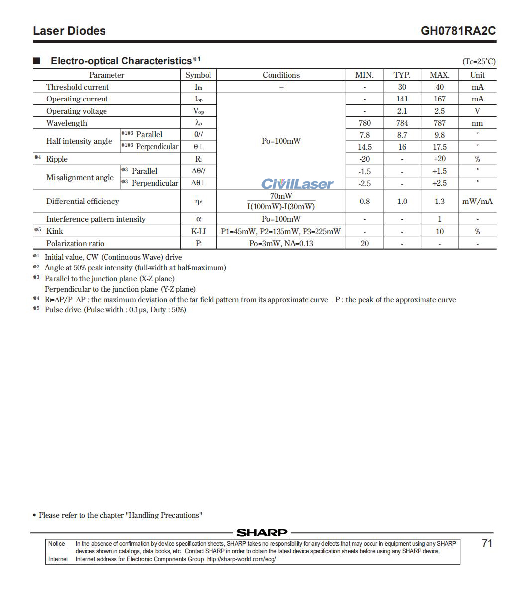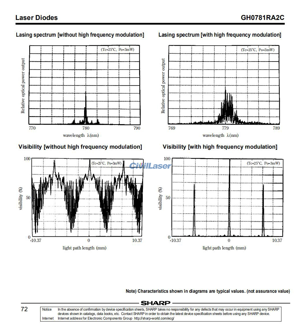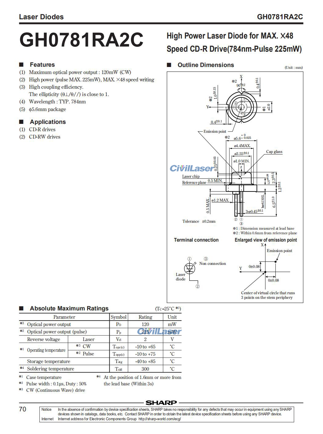 Sharp GH0781RA2C 780nm 100mW Diodo láser IR TO-18 5.6mm Package