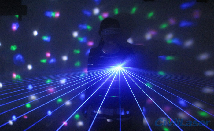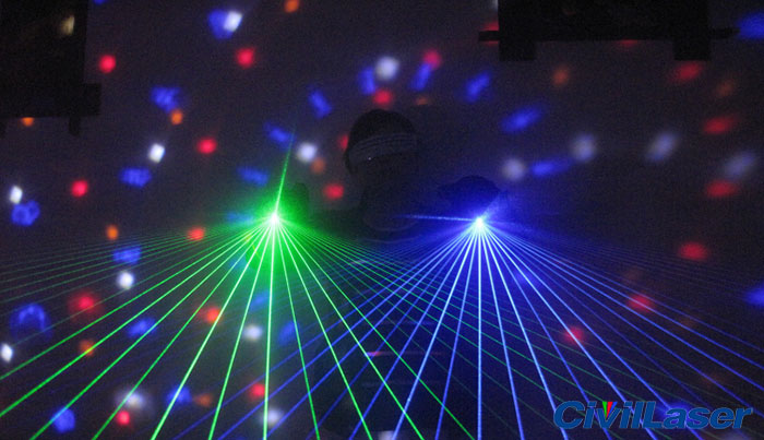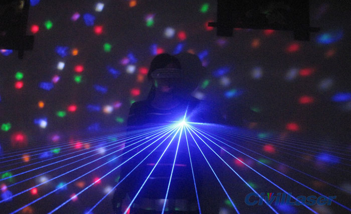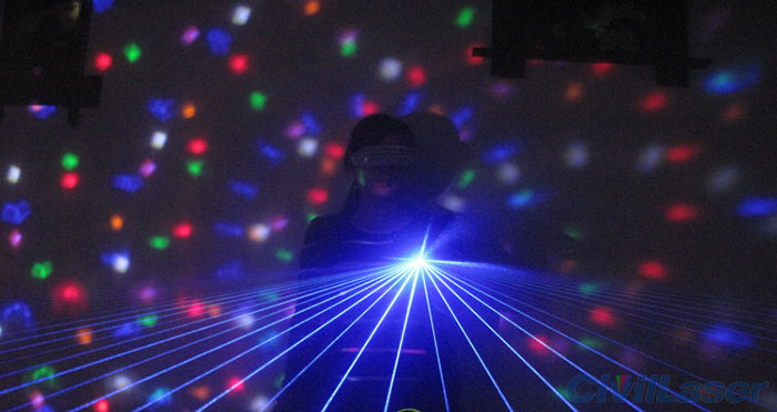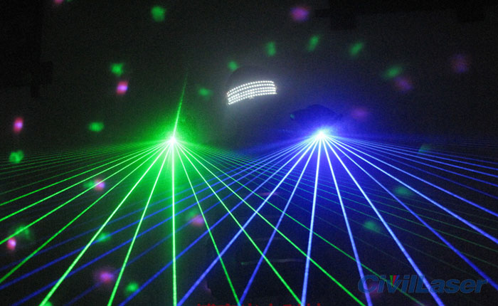 Include 2 blue laser modules,with a extends laser len for each laser module, it can emit 80 laser beam.