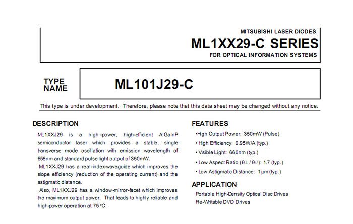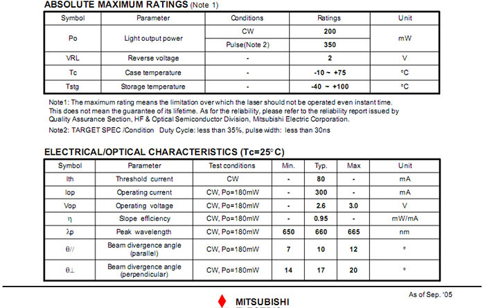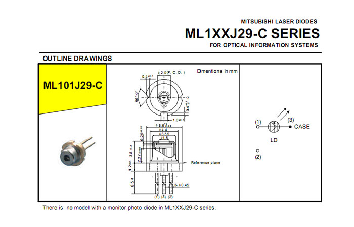 Mitsubishi ML129F27 CW 120mW Pulse 300mW 660nm Rojo Diodo láser$12.00