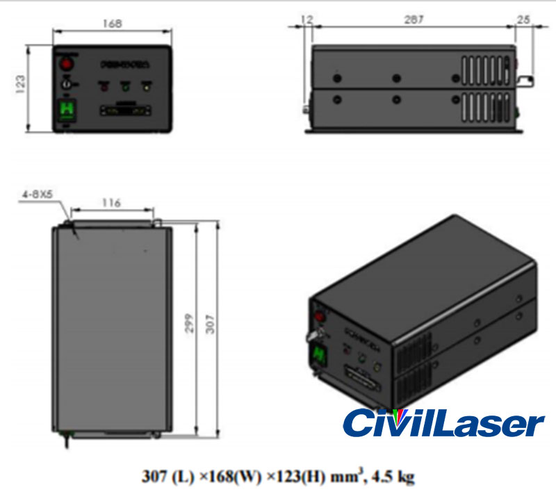 Laser Head dimension: Near 200(L)*99(W)*94(H)mm3 (Haga clic aquí para encontrar detalles)