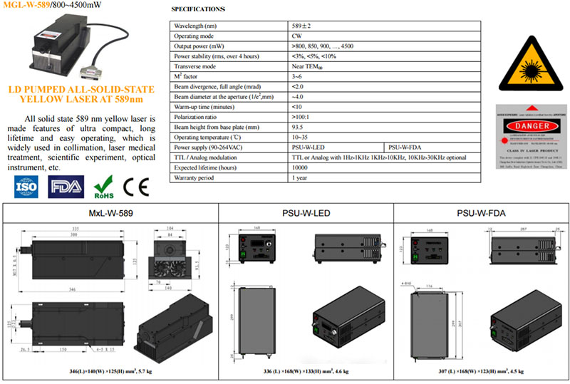 589nm 3.5W DPSS laser with TEM00 mode high power stability