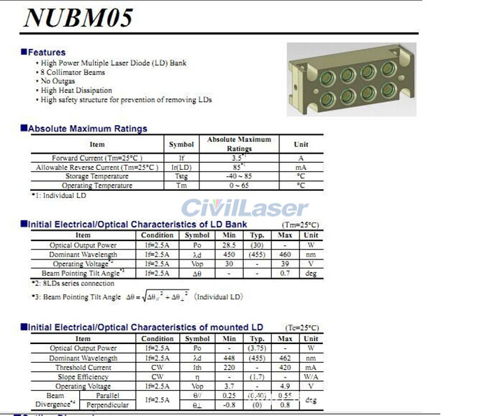 Nichia NUBM05 450nm 28w Azul Import Diodo láser Powerful 3.7V-4.9V LD