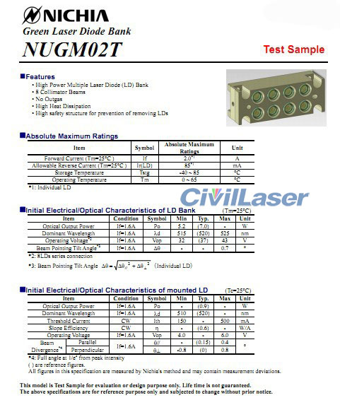 Diodo láser verde Nichia NUGM02T 8 Collimator Beams