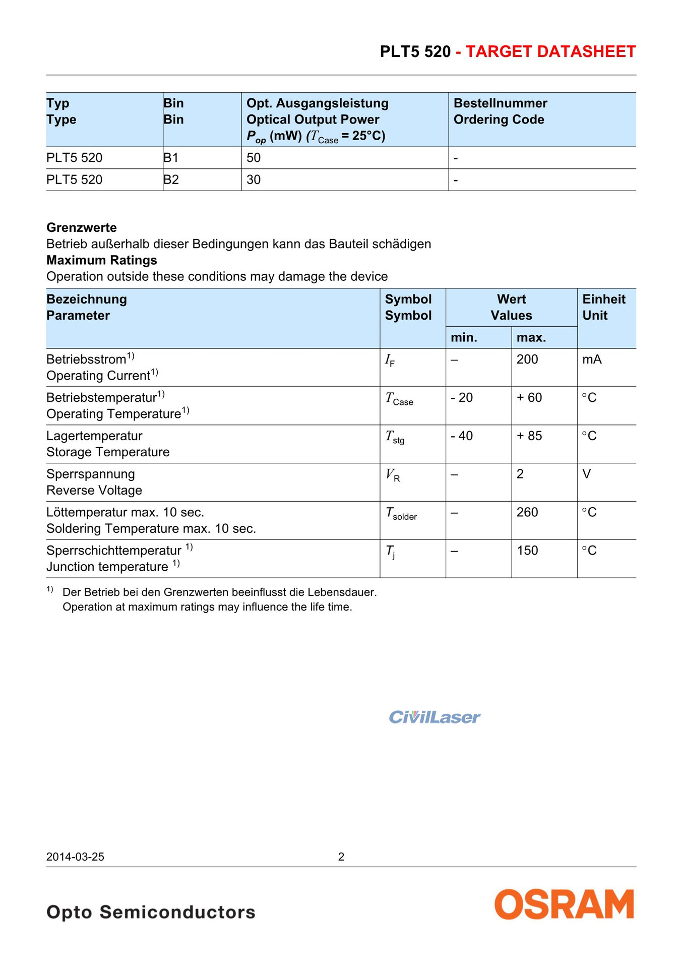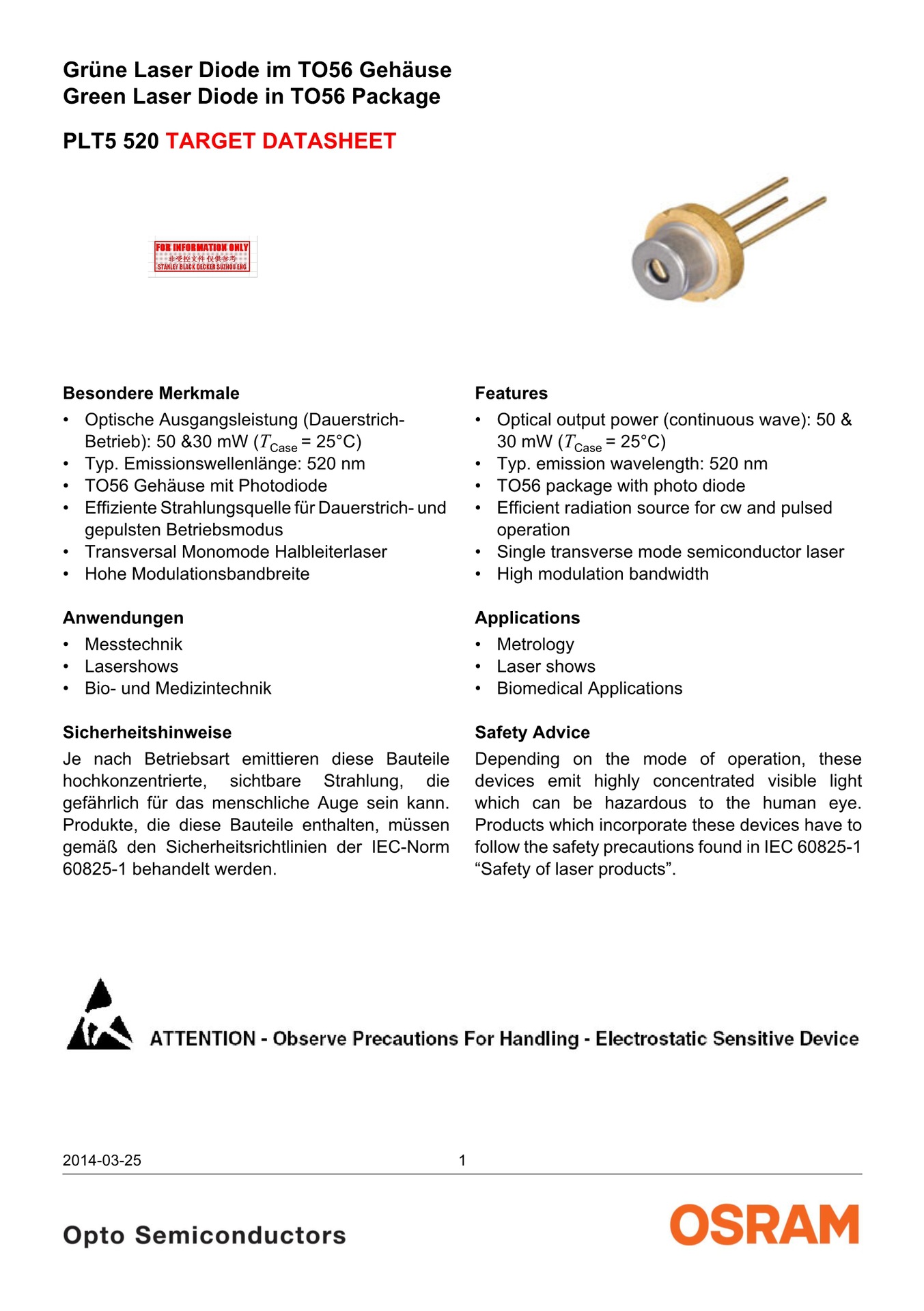 520nm 50mW Diodo láser verde OSRAM LD PLT5 520 TO56