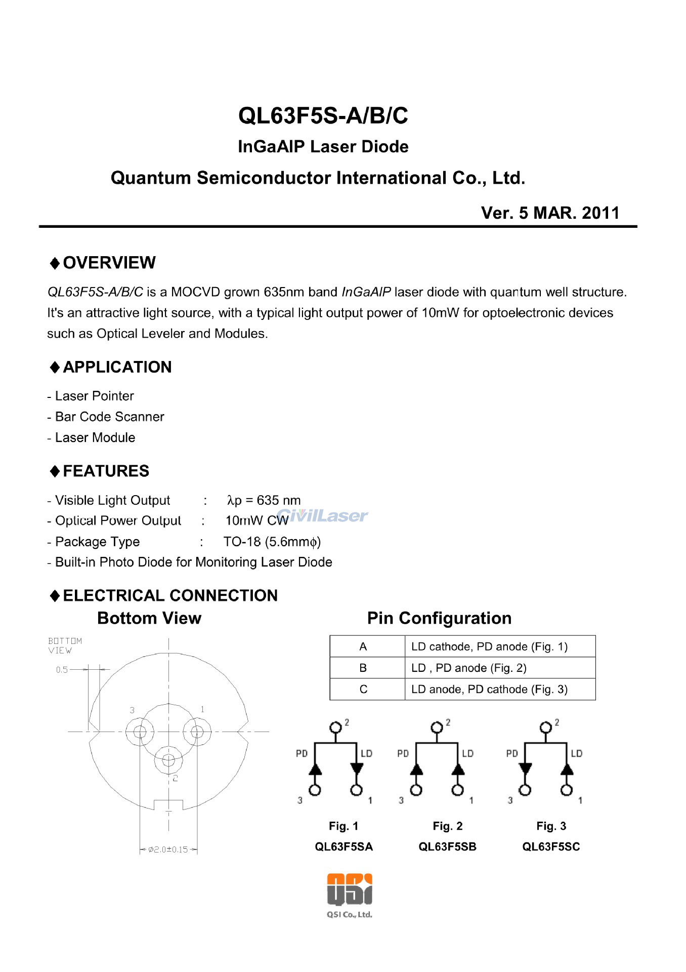 635nm 10mW QSI LD QL63F5SX R1 Rojo Diodo láser TO-18