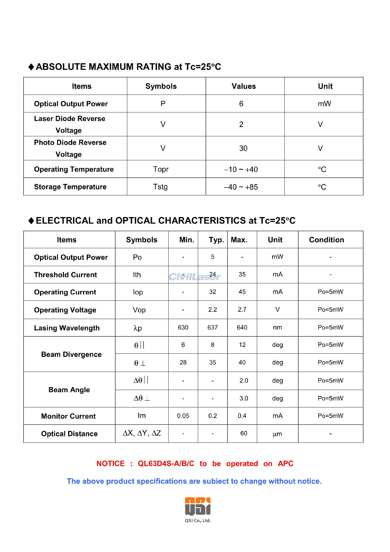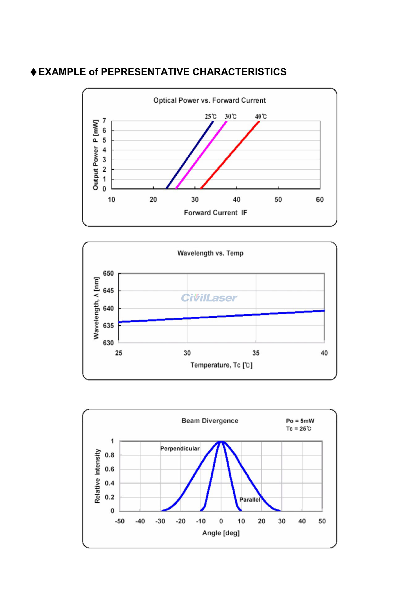 Optical output power :5mW CW