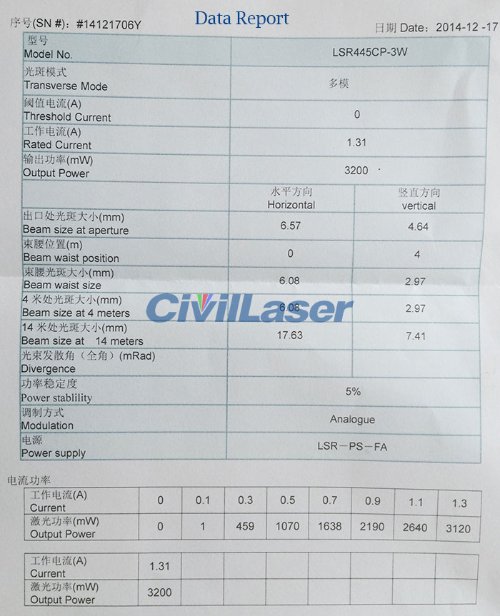 445nm 3W 4W high power solid state laser CW Laser
