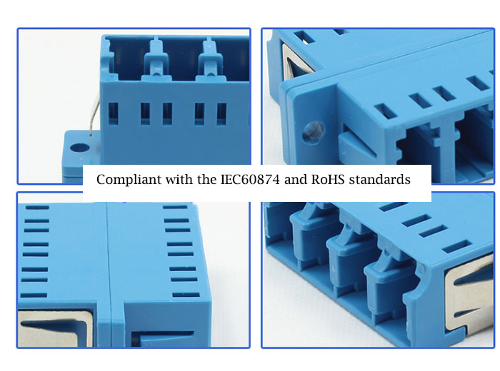 LC Plastic Fiber Optic Adapter Single Mode Four Core Azul Flange