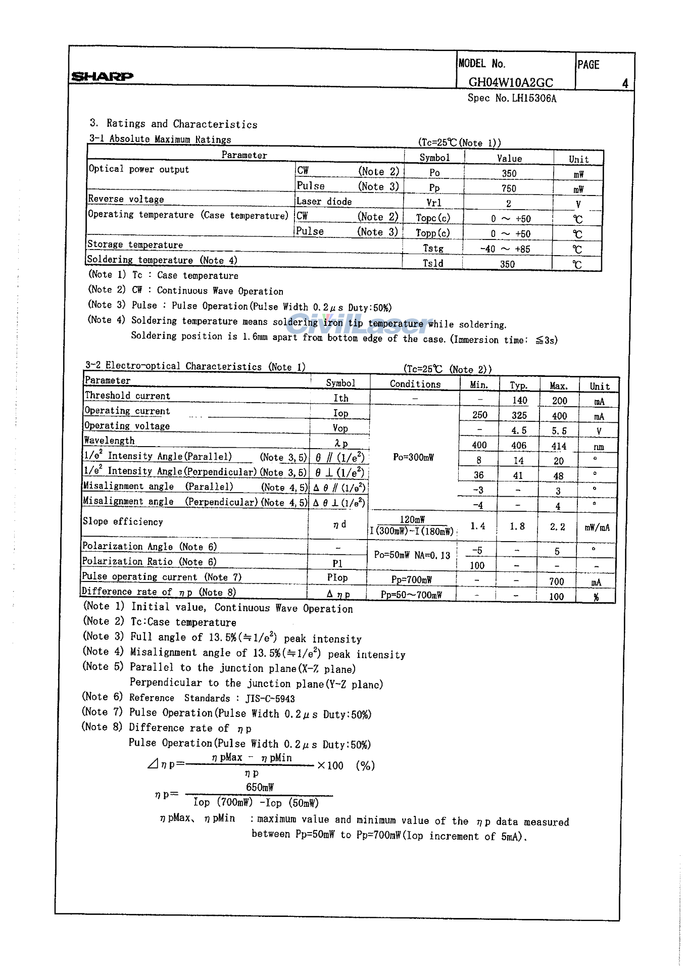 Optical Potencia de salida: CW 350mW (@Tc=25° C)