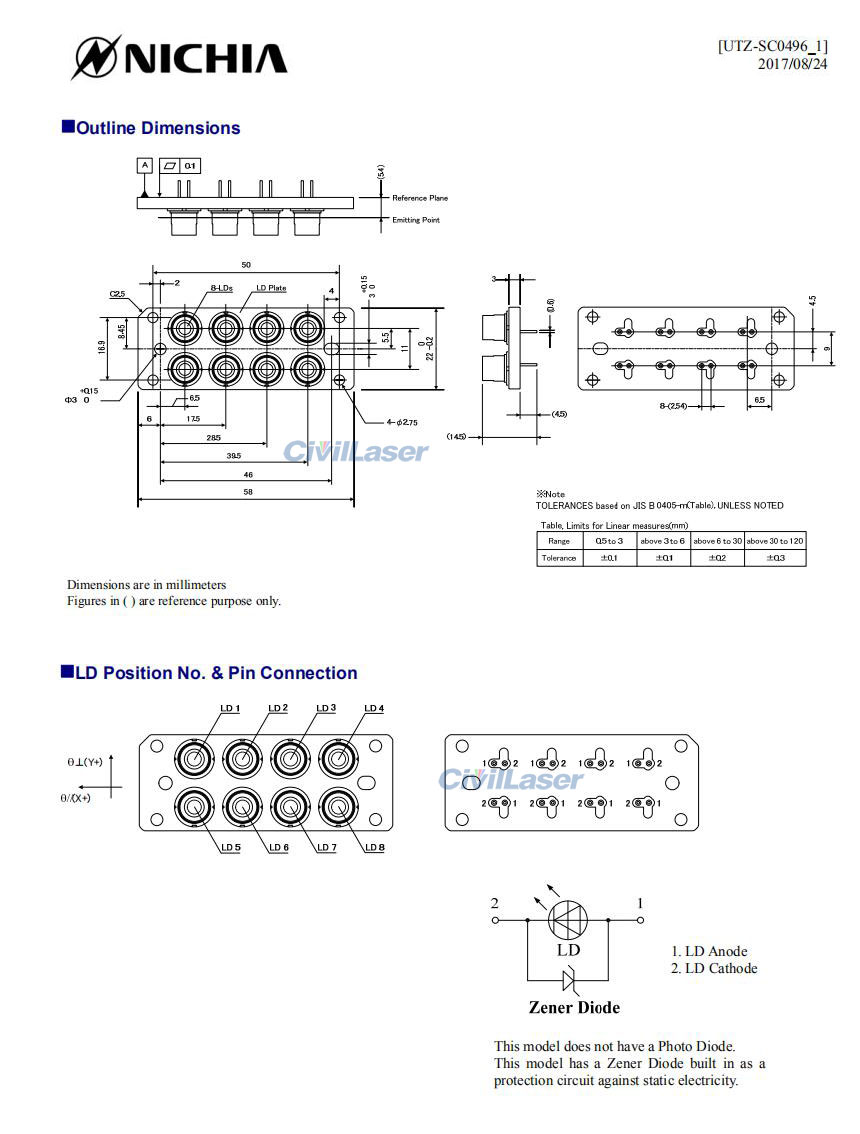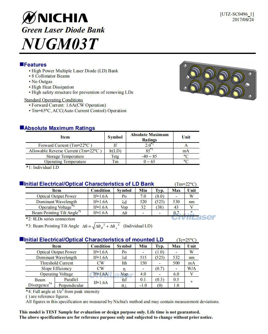 Nichia NUGM03T 525nm 8W Diodo láser Bank Verde Fuente de luz 8*1W LD