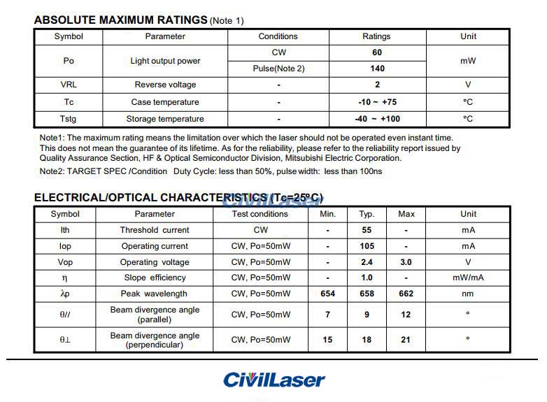 1. High output power: 140mW (Pulse)