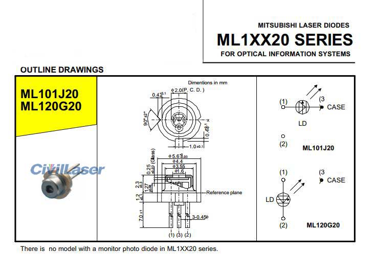 658nm 60mW CW Output Power 140mW Pulse Power Rojo Diodo láser Mitsubishi ML101J20