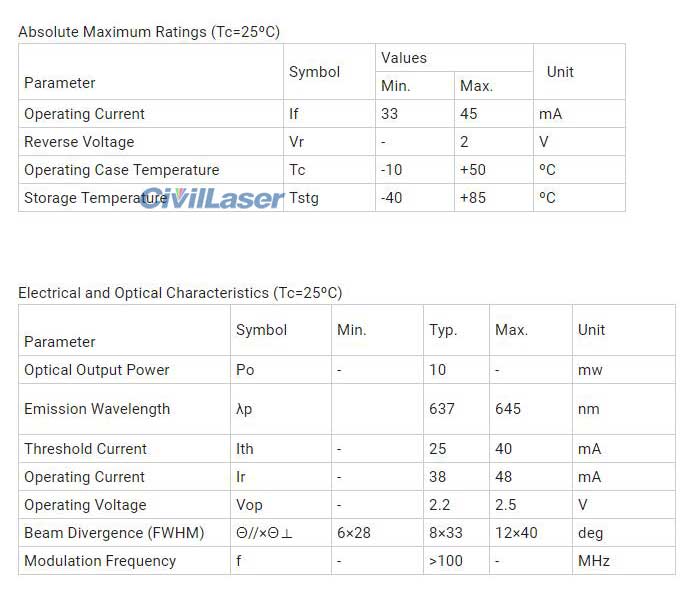 Cheap laser Module LD Rohm 650nm 10mW Rojo Diodo láser TO5.6