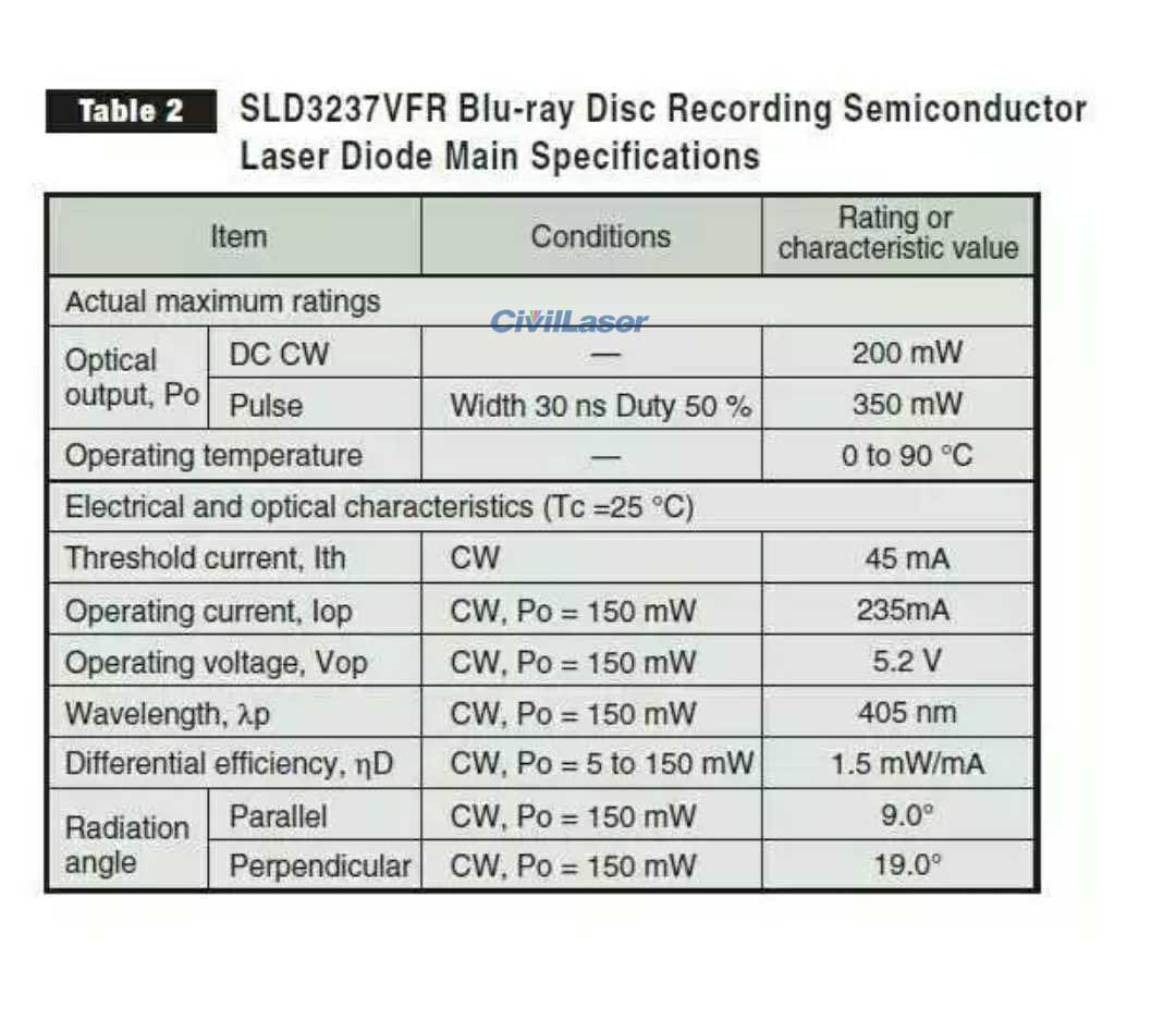 SONY 405nm 200mW Violeta Azul Diodo láser SLD3237VFR-51 TO-3.8
