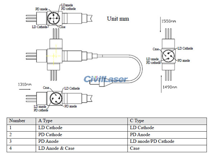 Triplexer Laser 1310nm 1490nm 1550nm Three Wavelength DFB LD Láser trenzado